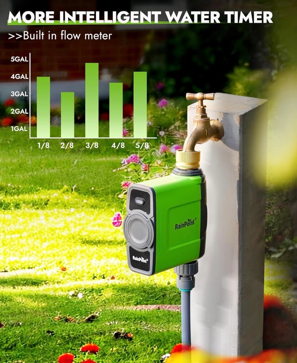 Looking to automate your garden watering? This RainPoint WiFi Sprinkler Timer with Wi-Fi Hub is just the ticket! It's a smart way to keep your plants happy and hydrated, even when you're away. It features a built-in flow meter and offers 3 irrigation modes and 5 watering frequencies. Get ready for a more intelligent water timer!