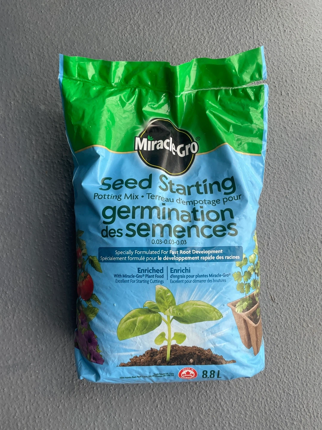 Three bags of Miracle-Gro Seed Starting Potting Mix for fast root development. Specially formulated for seedlings and cuttings. It's enriched with Miracle-Gro Plant Food. Good for starting your seeds and plants!