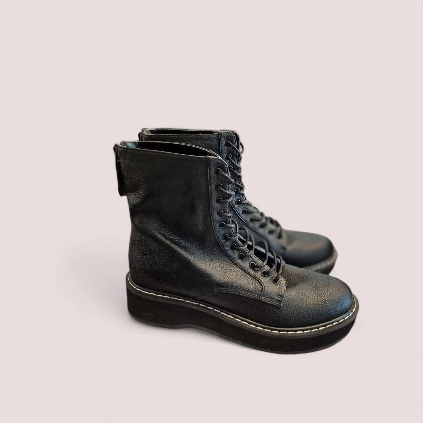 Selling a pair of Kendall + Kylie black combat boots in size 10. Brand new! These stylish boots are perfect for adding a bit of edge to any outfit. The platform sole gives you a little extra height, and the lace-up design ensures a secure and comfortable fit