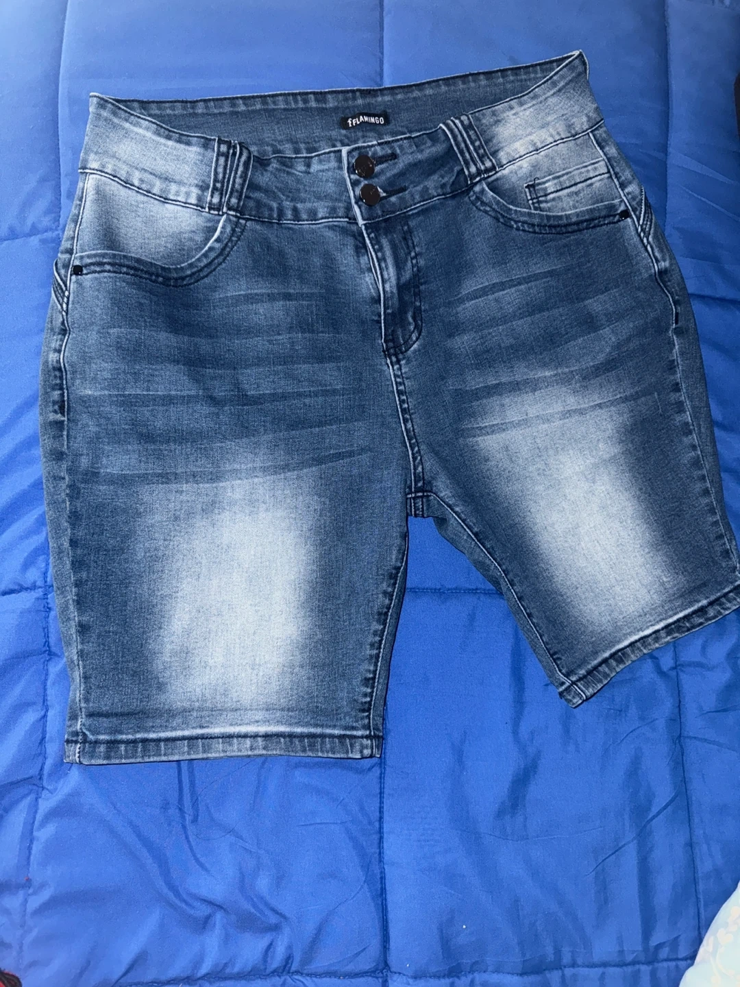 These Flamingo denim shorts come in a classic blue wash. They feature a comfortable fit and a stylish design. Perfect for casual wear!
