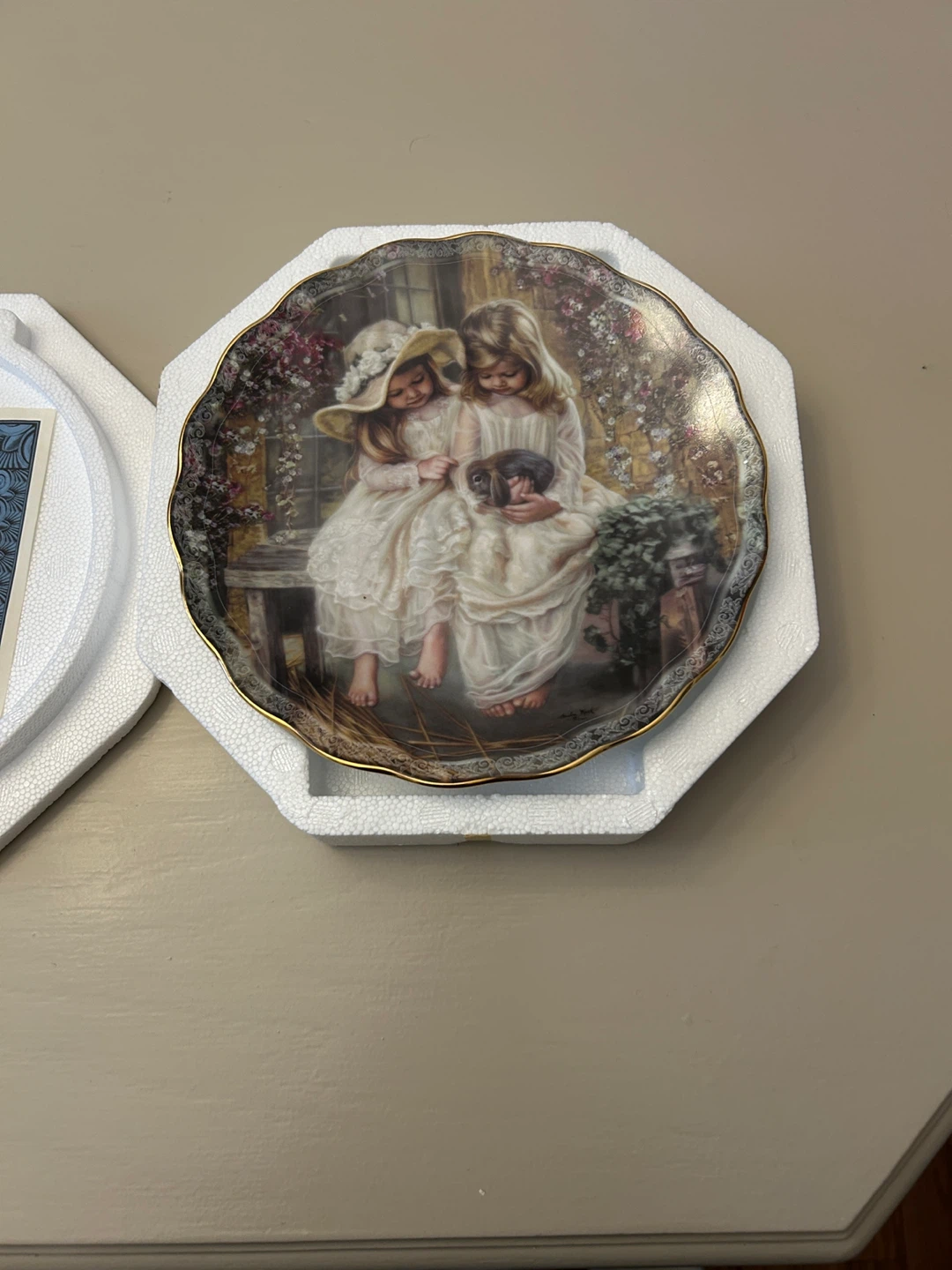 This is the "Love's Gentle Touch" collector plate, the premier issue in the Sandra Kuck Treasured Moments collection. It's produced to the highest quality standards in a limited-edition presentation. It comes with a Certificate of Authenticity. brand new and it’s original pack.