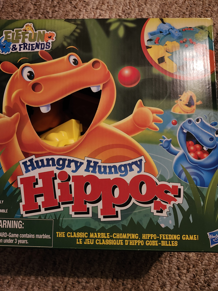Selling a gently used Hungry Hungry Hippos game by Hasbro! It's the classic marble-chomping, hippo-feeding game that's fun for the whole family. The box is included, so it's ready to go for its next home