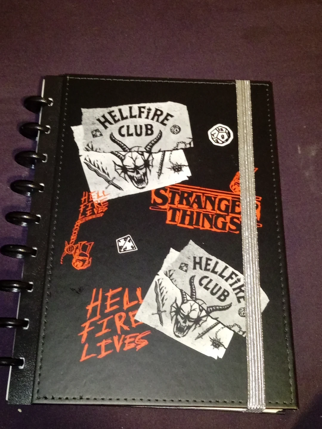 This Stranger Things notebook features the iconic Hellfire Club logo. It's a spiral-bound planner or notebook with a black cover. Perfect for fans of the show to jot down notes or plan their adventures!