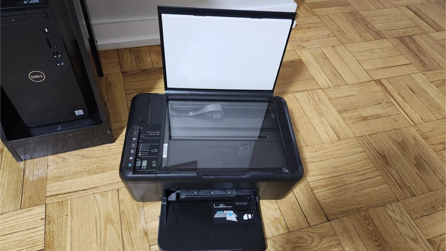 Includes keyboard, mouse, and monitor and printer with ink included. Desk included as well.