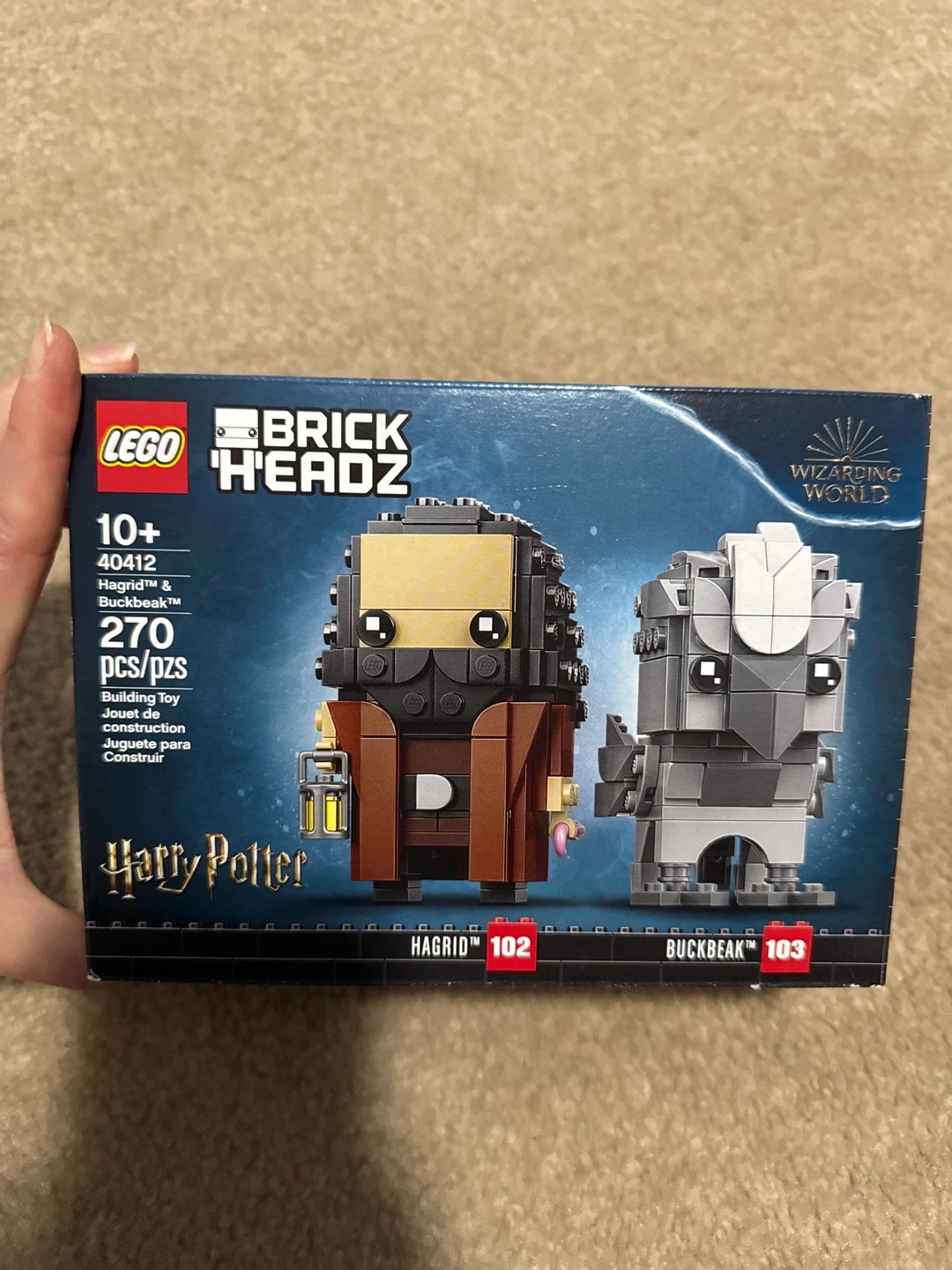 Selling a LEGO BrickHeadz Harry Potter Hagrid & Buckbeak set (40412)! This building toy has 205 pieces and is suitable for ages 10+. It is unopened.