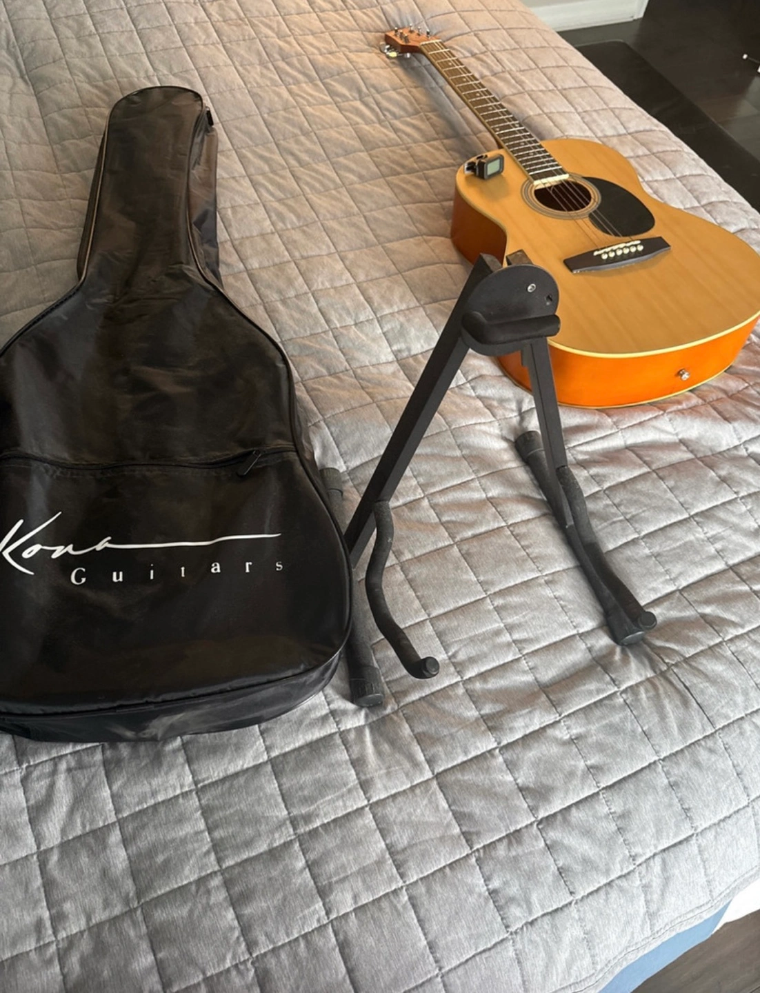 Selling a Kona Guitars acoustic guitar! It comes with a stand and a carrying case, so you'll have everything you need to get started or keep playing. It's in great shape and ready for a new home