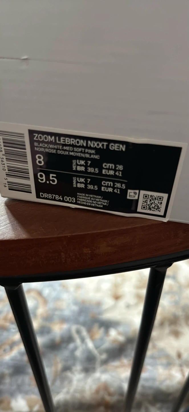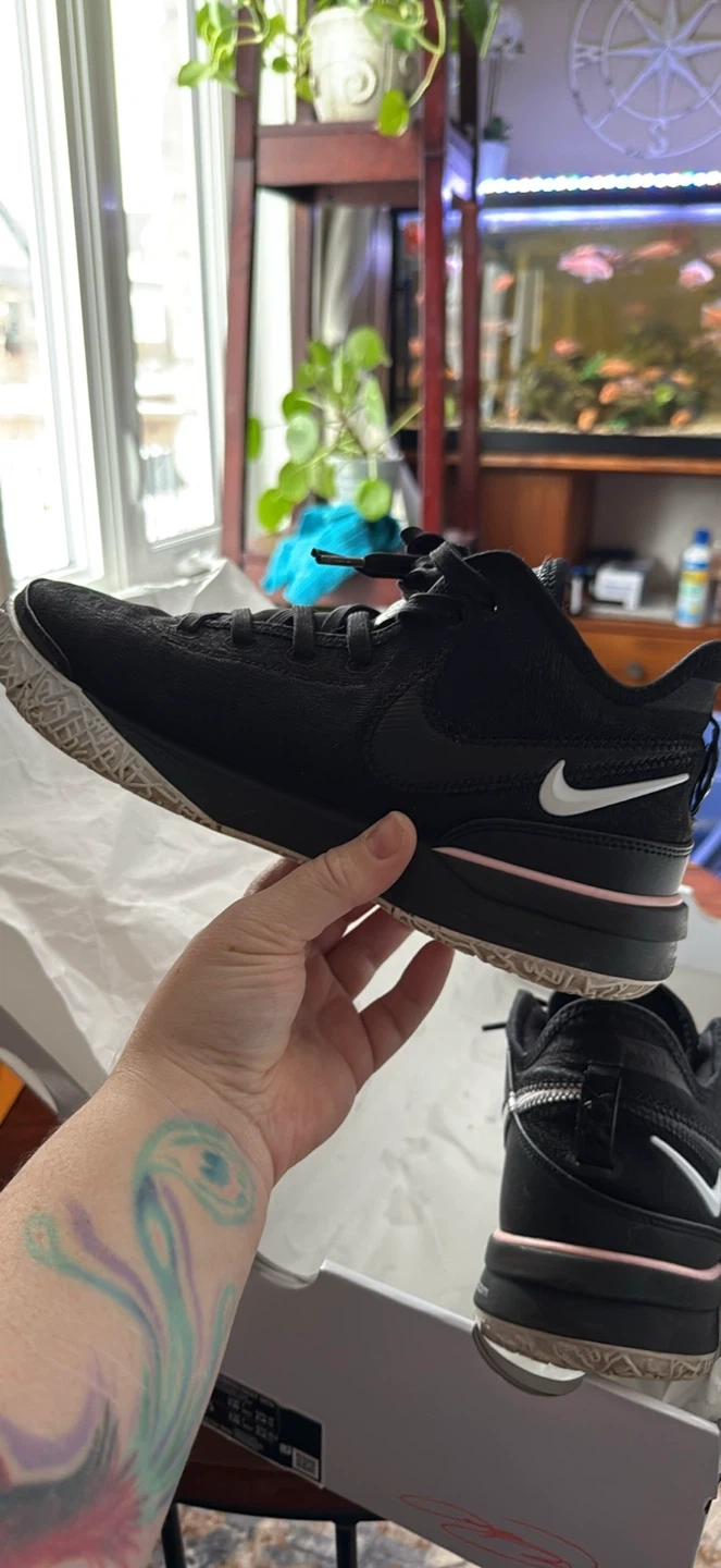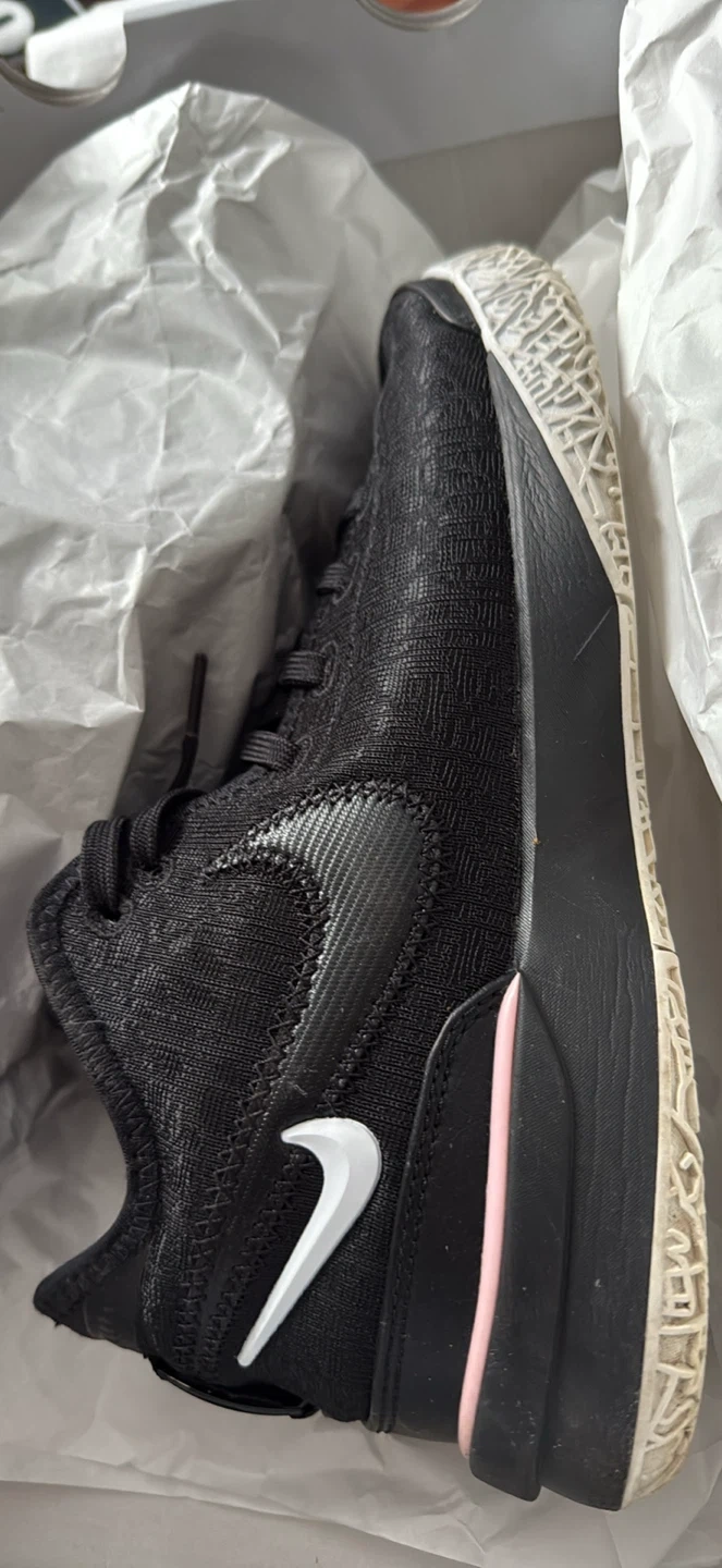 Nike Zoom LeBron NXXT Gen basketball shoes in black and white with soft pink accents. These are a size 9.5 US Women's / 8 US Men's / UK 7 / EU 41. Includes original box.