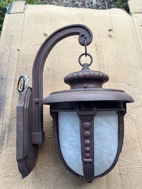 Outdoor Wall Light, Approx 16” length & 12” wide. Retail $300.00, asking $180.00 obo. Condition: New. For Sale By: Owner.