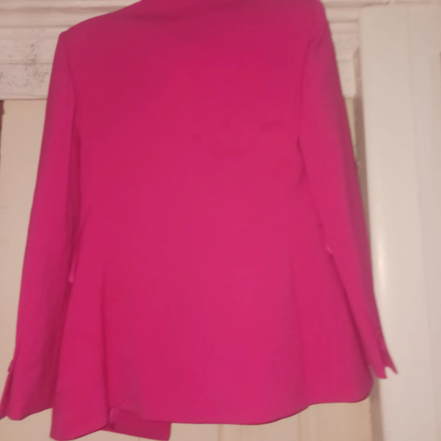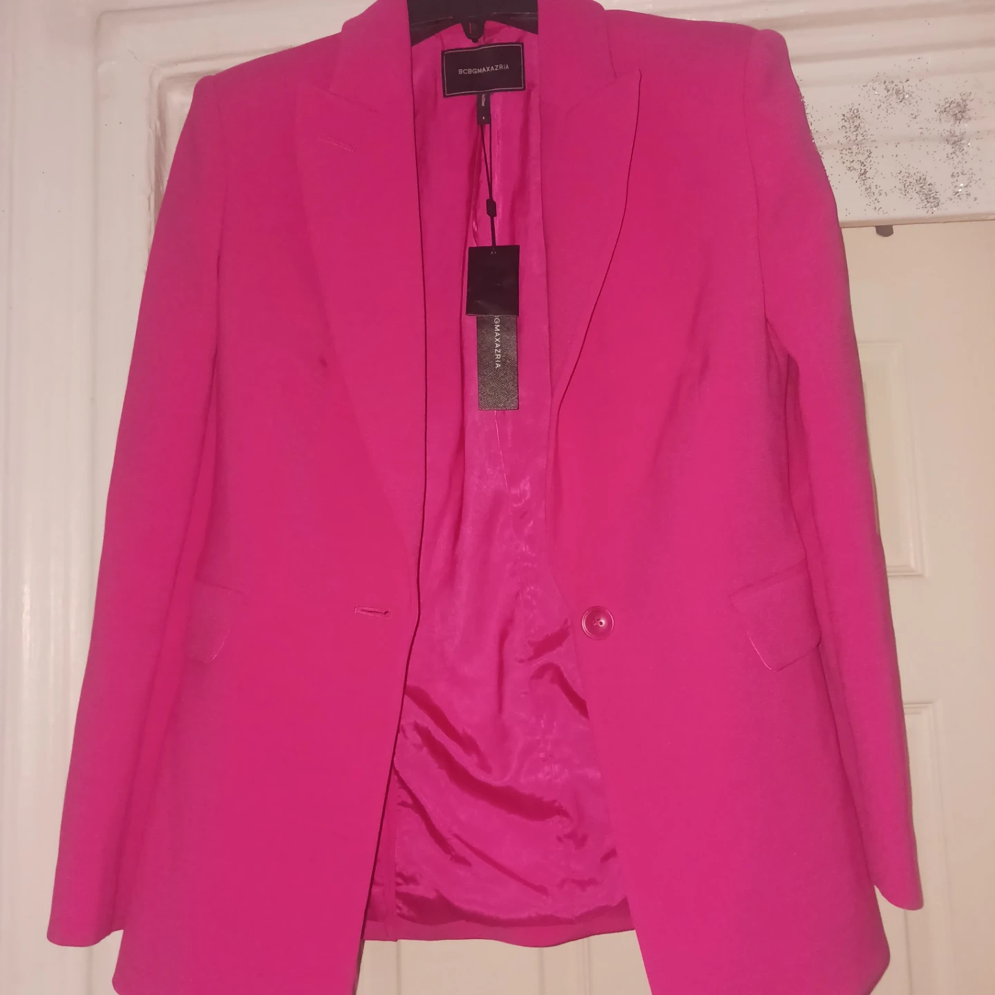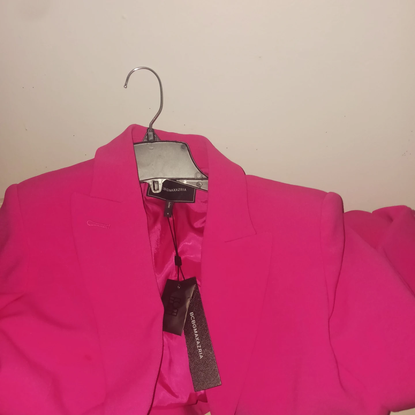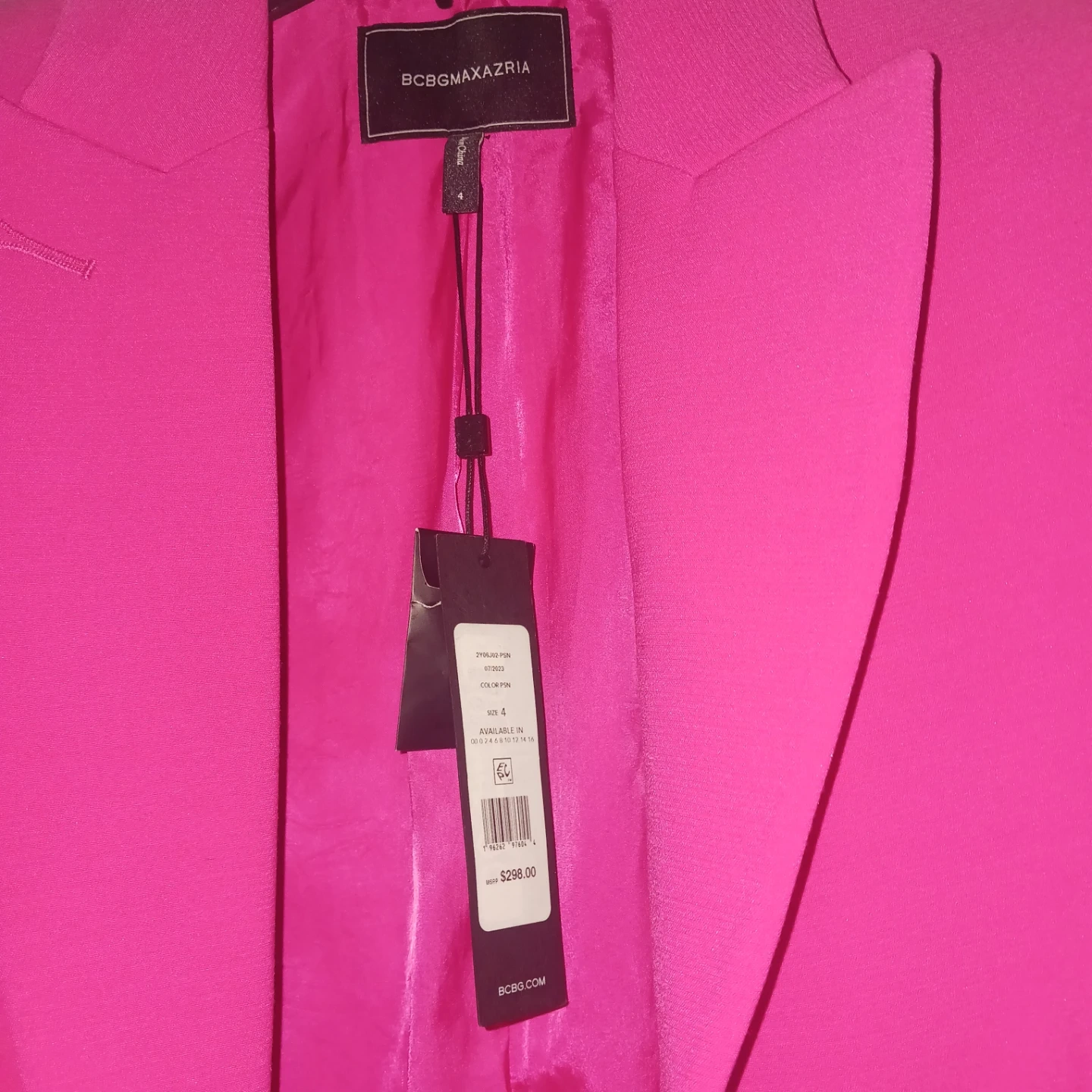 Selling a brand new BCBGMAXAZRIA blazer in a vibrant hot pink color! This stylish blazer is a size 4 and still has the original tag attached. The tag shows it originally retailed for $298. It's a beautiful piece to add to your wardrobe!