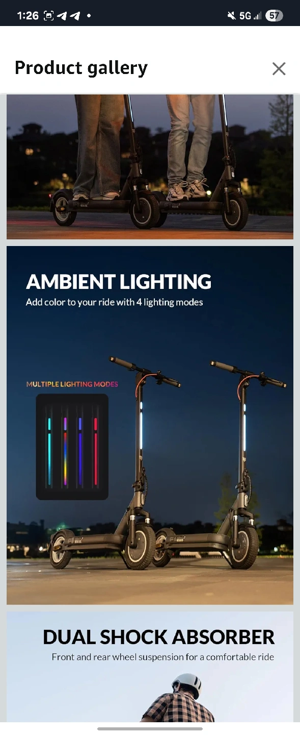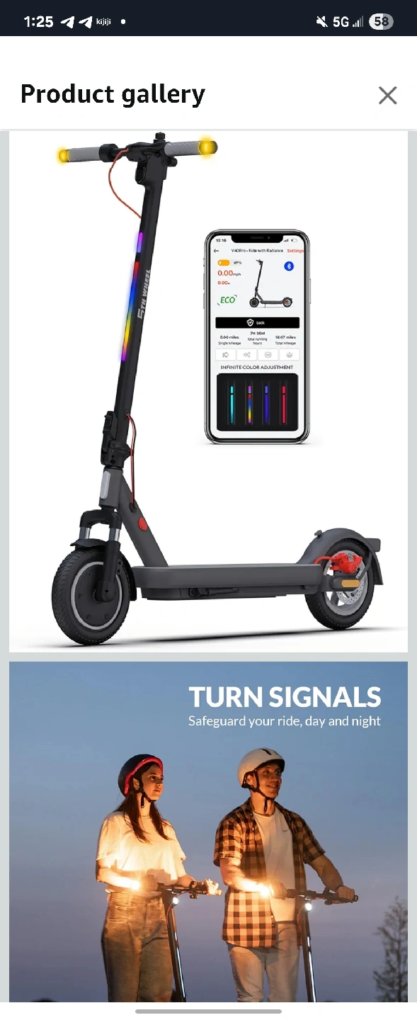 705TH WHEEL V40 PRO Adult Electric Scooter It's in new condition and ready for some fun rides around town! It features turn signals, ambient lighting, and dual shock absorbers for a comfortable ride. It comes with Phone holder, new helmet, and bag storage instead of the box. 10" Solid Tires,800W Peak Motor,32KM/H Top Speed,40KM Foldable Electric Scooter with Dual Suspension&Brakes,App Control,Ambient Light,UL2272 Certified The original price is 800$