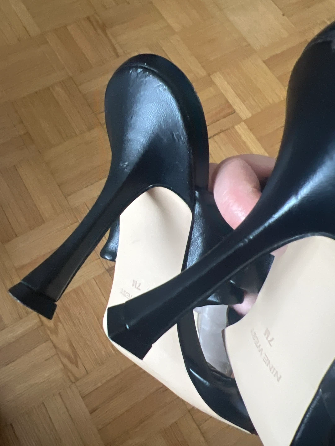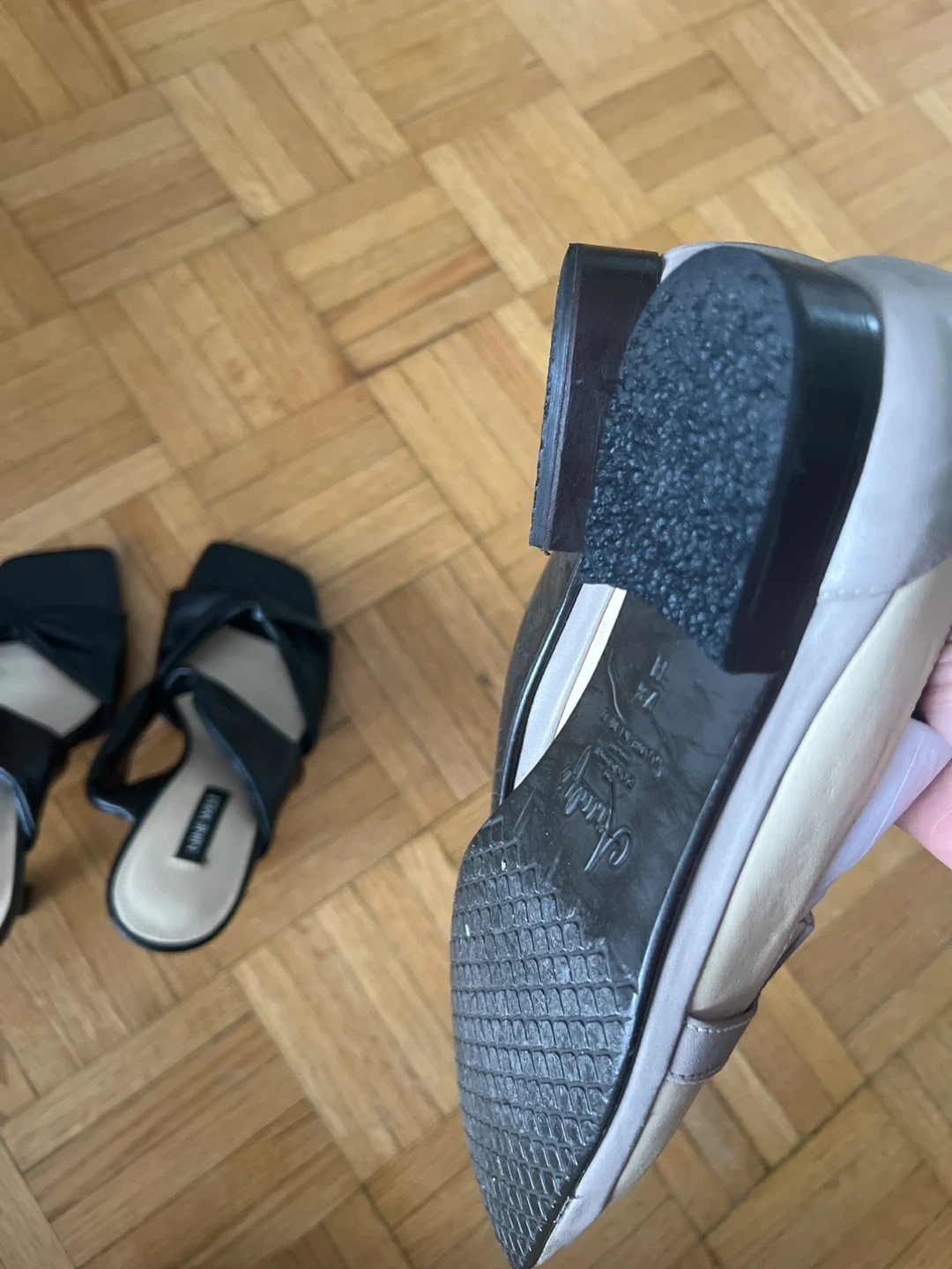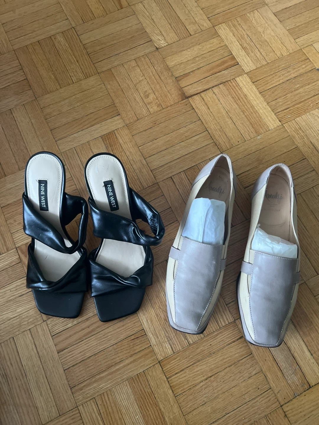 Selling a pair of Nine West heels and flats. The heels are black and size 7M. The flats are a beige/grey colour and size 7M. Both are in good condition!