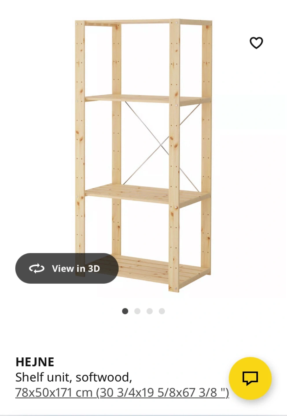 2 IKEA HEJNE shelf units made from softwood. Dimensions are 78x50x171 cm. It has four shelves.$30 each or $55 for both. Make an offer