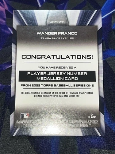 This lot includes 2022 Topps #JNM-WF Wander Franco Jersey Number Medallion Commemorative Relics RC, 2022 Topps Stars of MLB #SMLB-20 Wander Franco RC (x2), and 3x Vladimir Guerrero Jr. 2022 Topps Series 1 Stars Of MLB Toronto Blue Jays SMLB-22 cards. Feel free to message if you have any questions!