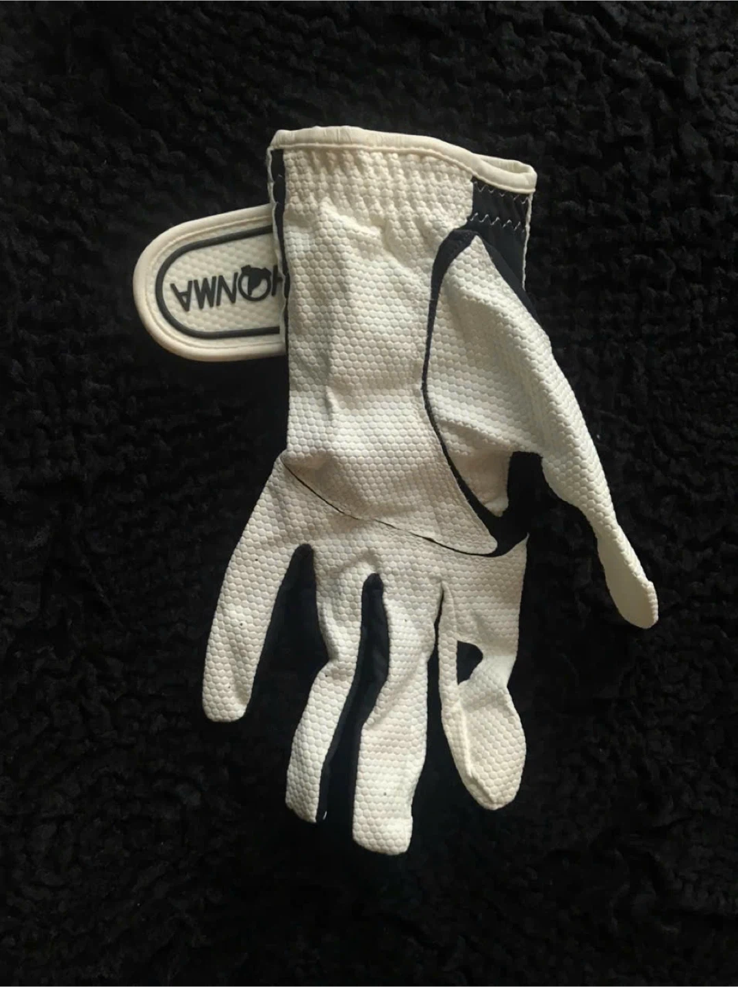 This is a white and black Honma golf glove SPEEDMONSTER. It's a women M size, fitting a left hand circumference of 21-22cm. Made for golfer.