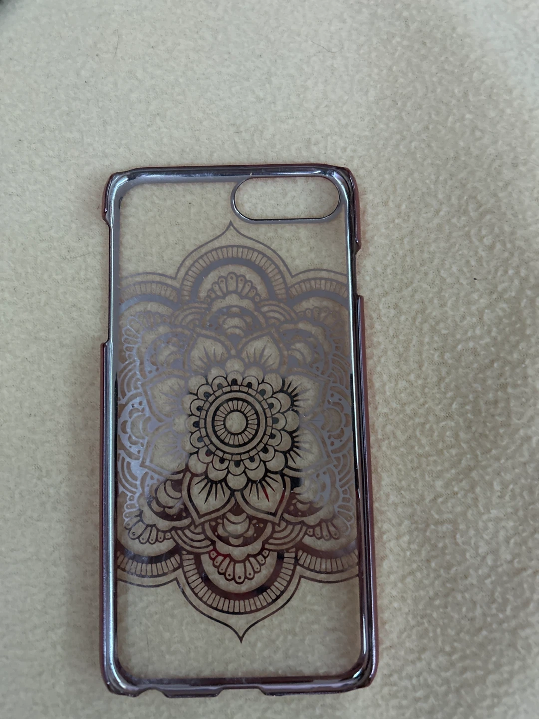 Selling a phone case with a pretty floral design! It's in great condition and has a clear backing with a rose-gold coloured trim. It fits an older iPhone model.