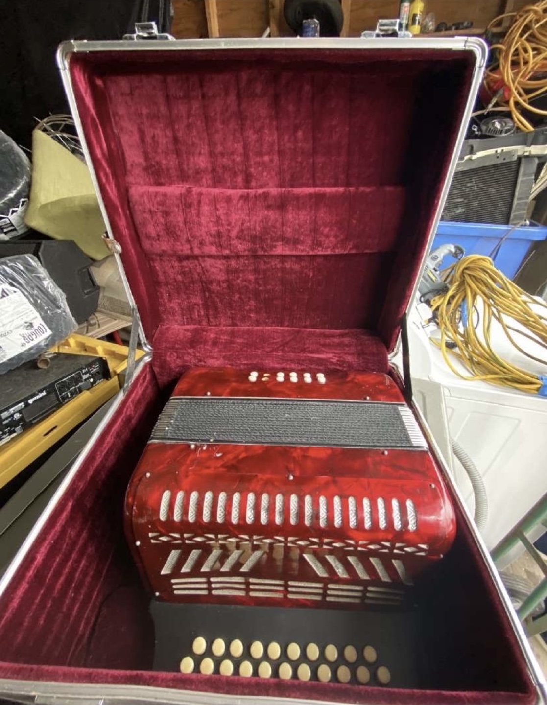 1 / 41 / 4Buy & SellVintage Red Accordion with Hard CaseVintage Red Accordion with Hard Case$500Red accordion in a hard case. Buttons and reeds. Great for beginners or collectors.missing 2 buttonsWHERE TO MEETCheck LocationView MapSELLERcristianGage Park251 review0 chats·1 favorites·43 viewsSEND CHAT TO SELLERHi cristian! I’m interested in your listing.Hi cristian! I’m interested in your listing.Get the Karrot app to chatSign In to chat