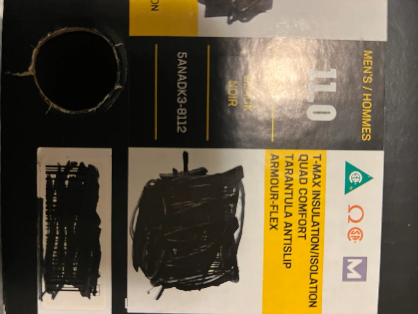 Terra T-Max Quad Comfort boots with Tarantula Antislip Armour-Flex. These men's boots are size 11 and black with yellow accents. They offer insulation and are designed for work. Never wear them