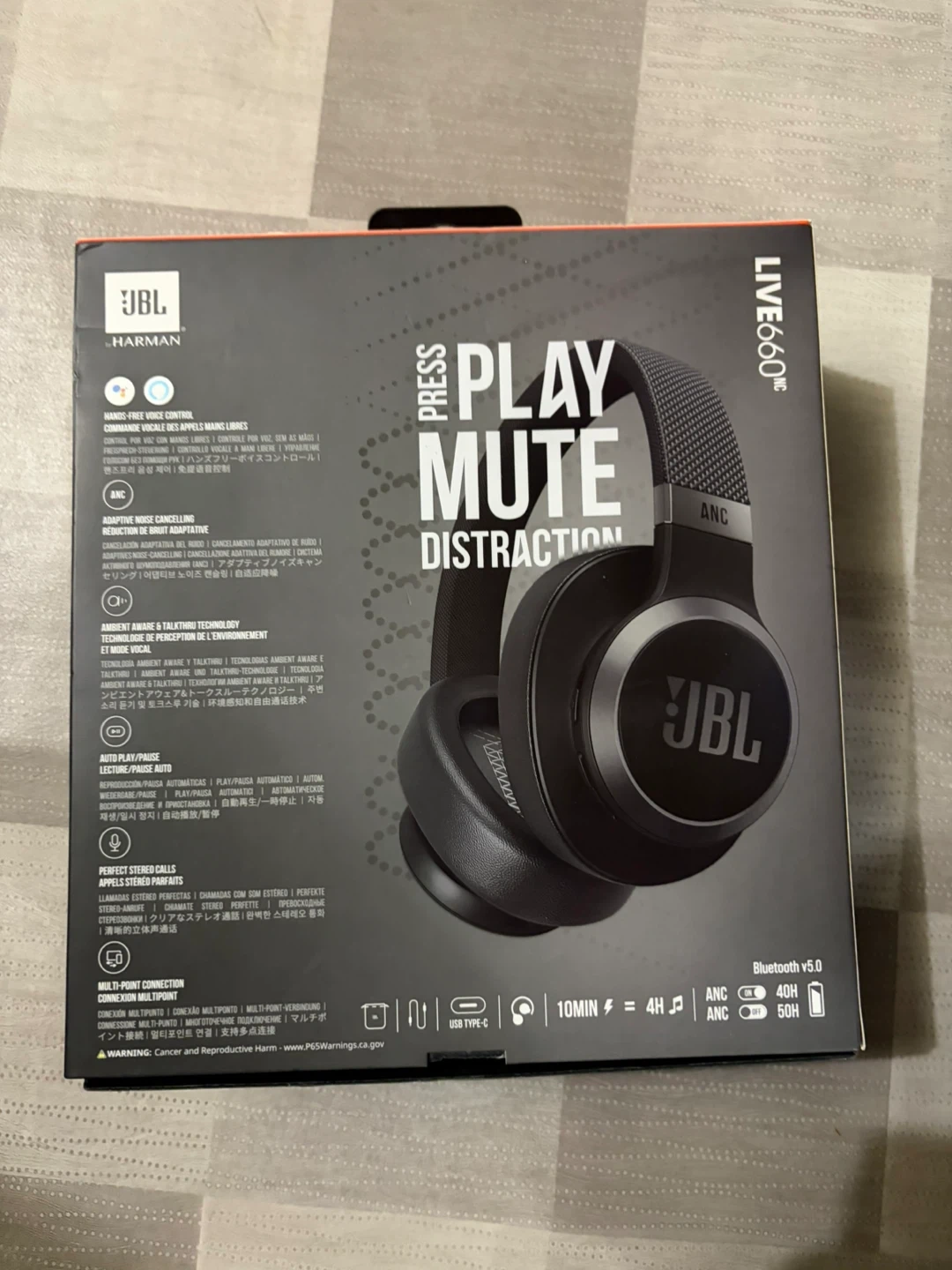 JBL LIVE660NC wireless headphones with adaptive noise cancelling. They feature Bluetooth connectivity and are built with Ok Google and Alexa voice assistant support. Enjoy up to 50 hours of playback time! Only used once comes with box and everything it originally came with paid $350 at bestbuy.
