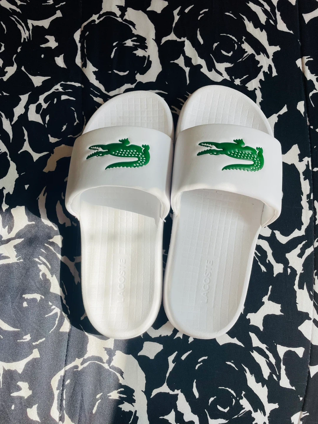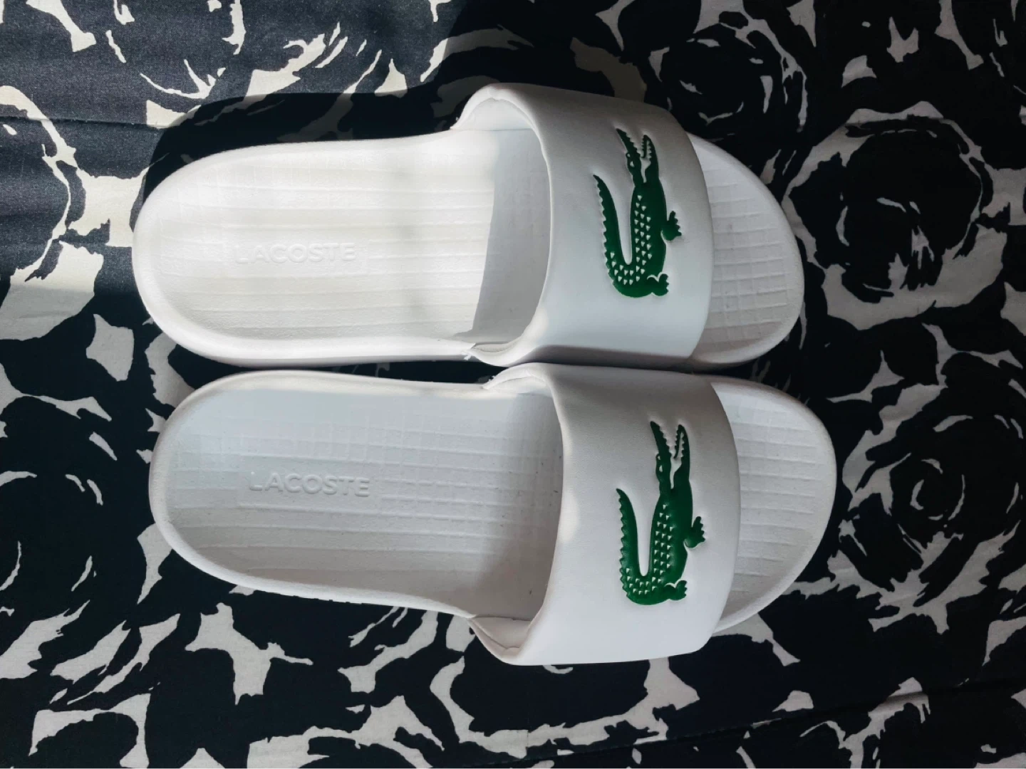 Buy & SellLacoste White Slides with Green Crocodile LogoLacoste White Slides with Green Crocodile Logo$40White Lacoste slides featuring the iconic green crocodile logo. These slides are made for comfort and casual wear. Slip-on design.ConditionNewSize8WHERE TO MEETCheck LocationView MapSELLERverifiedDianaEast New York1316 reviews1 chats·1 favorites·8 viewsSEND CHAT TO SELLERHi Diana! I’m interested in your listing.Hi Diana! I’m interested in your listing.Get the Karrot app to chatSign In to chat