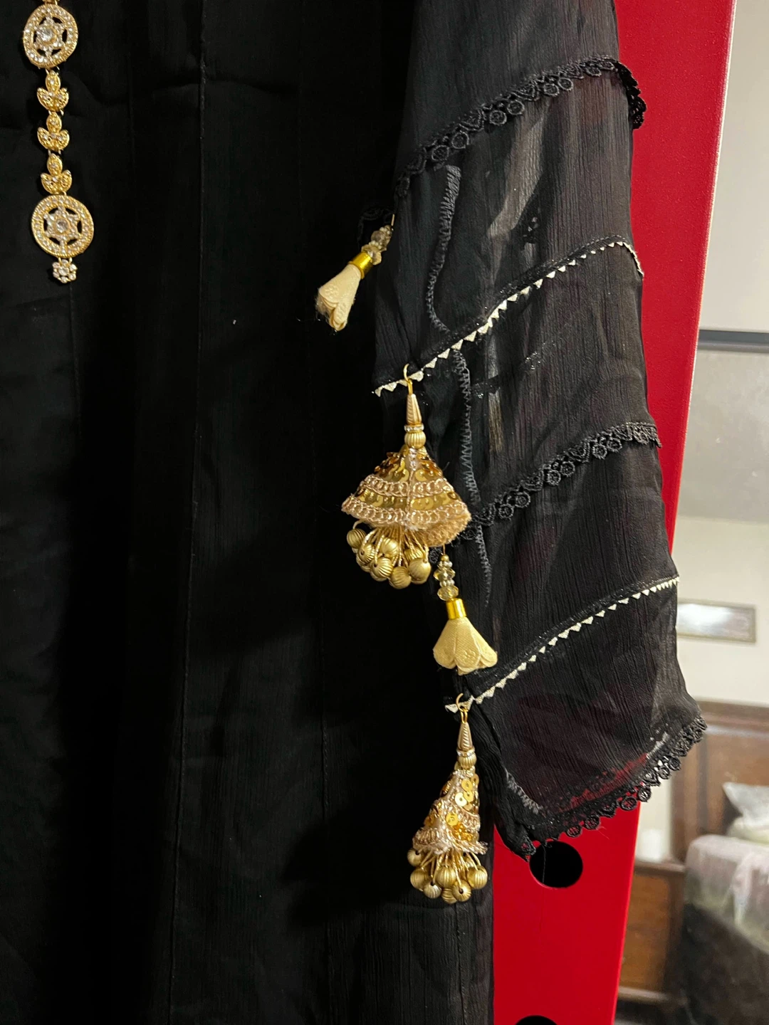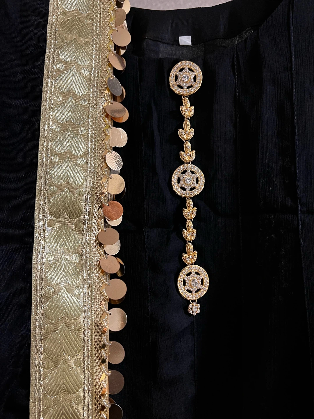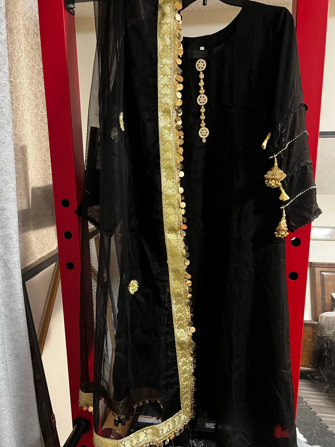 Beautiful black maxi with gold detailing. The fabric is lightweight and comfortable, perfect for a special occasion or everyday wear. The intricate design adds a touch of elegance to this traditional outfit
