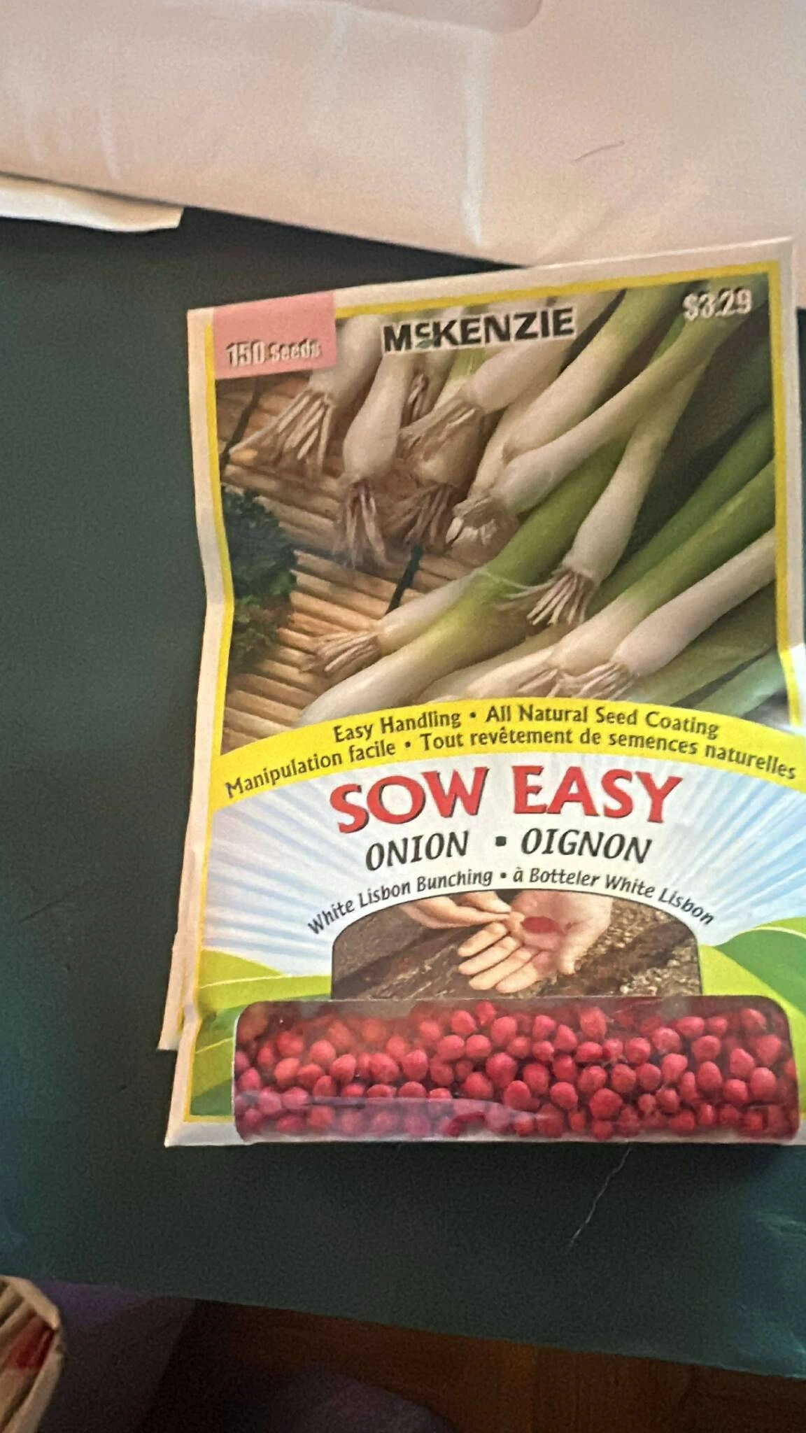 Selling 2 Packs of McKenzie Sow Easy Onion (Oignon) White Lisbon Bunching seeds for $1.25 per Pack. Easy handling with all natural seed coating. 150 seeds. Original price is $3.29 each