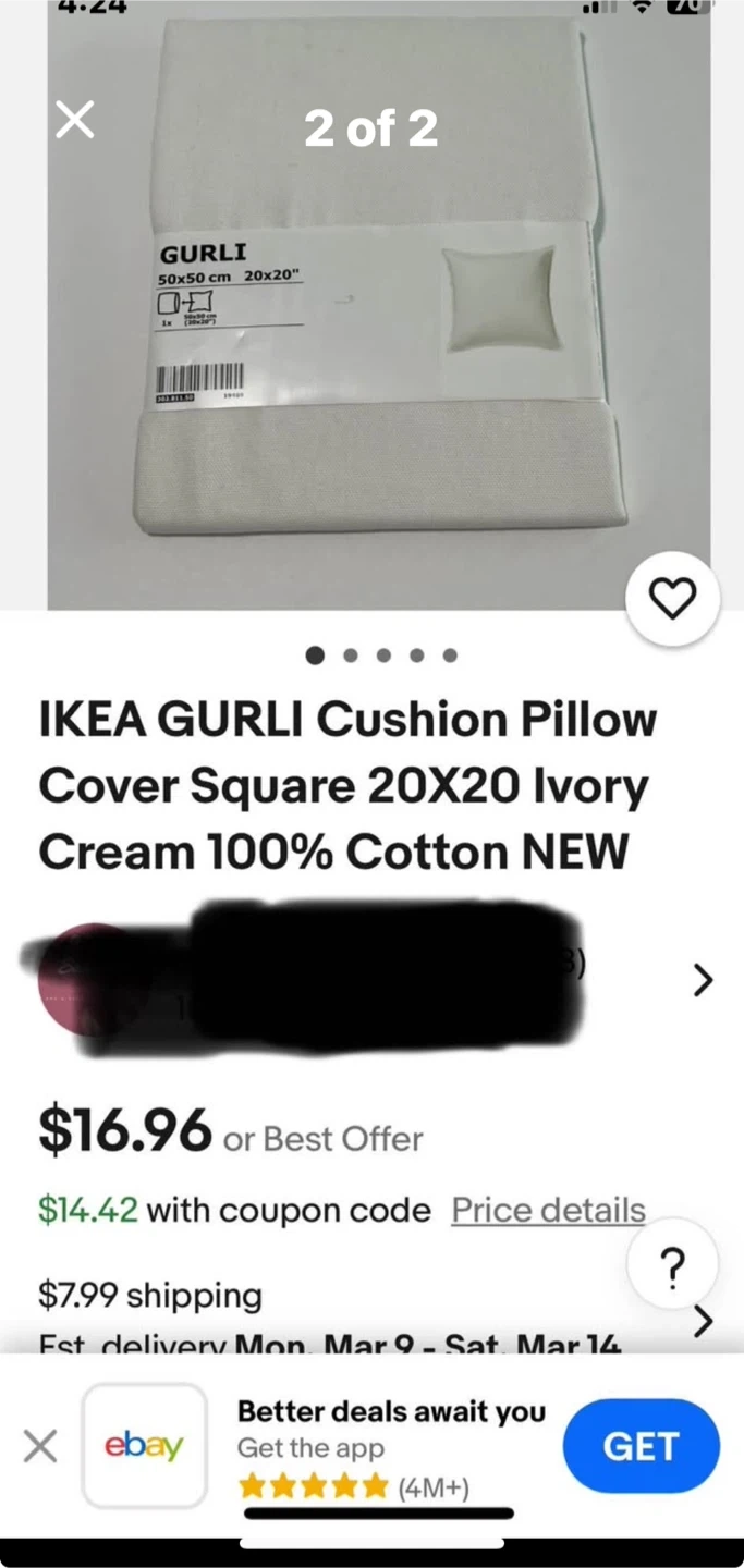 2 vintage IKEA GURLI Cushion Pillow Cover 20X20 Ivory Cream