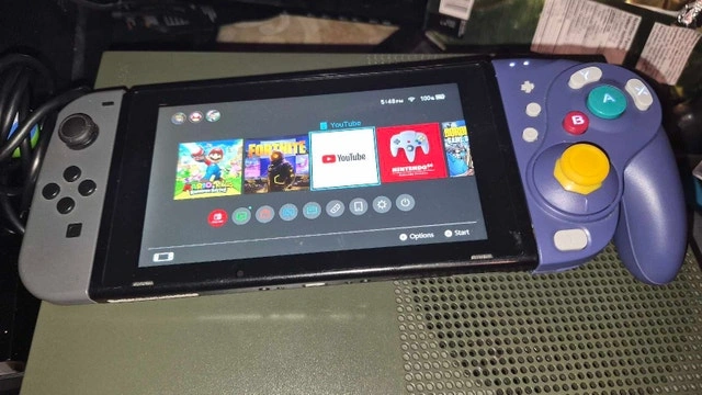 Launch Model Switch v1. 32GB. Able to be software or hardware modded w atmosphere or picofly. 128GB SD Card installed. 7 digital games included as shown in pictures, + mario and rabbids cartridge. 3 wired pro controllers, game cube grip joycon, dock, power supply, HDMI cables and box included. In excellent shape for a launch model. No dings, dents, or gouges. $250 or best reasonable offer. Can drop off in east GTA if offer is reasonable.