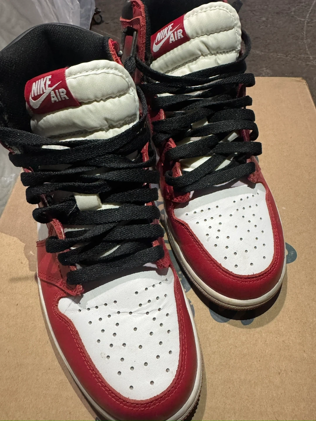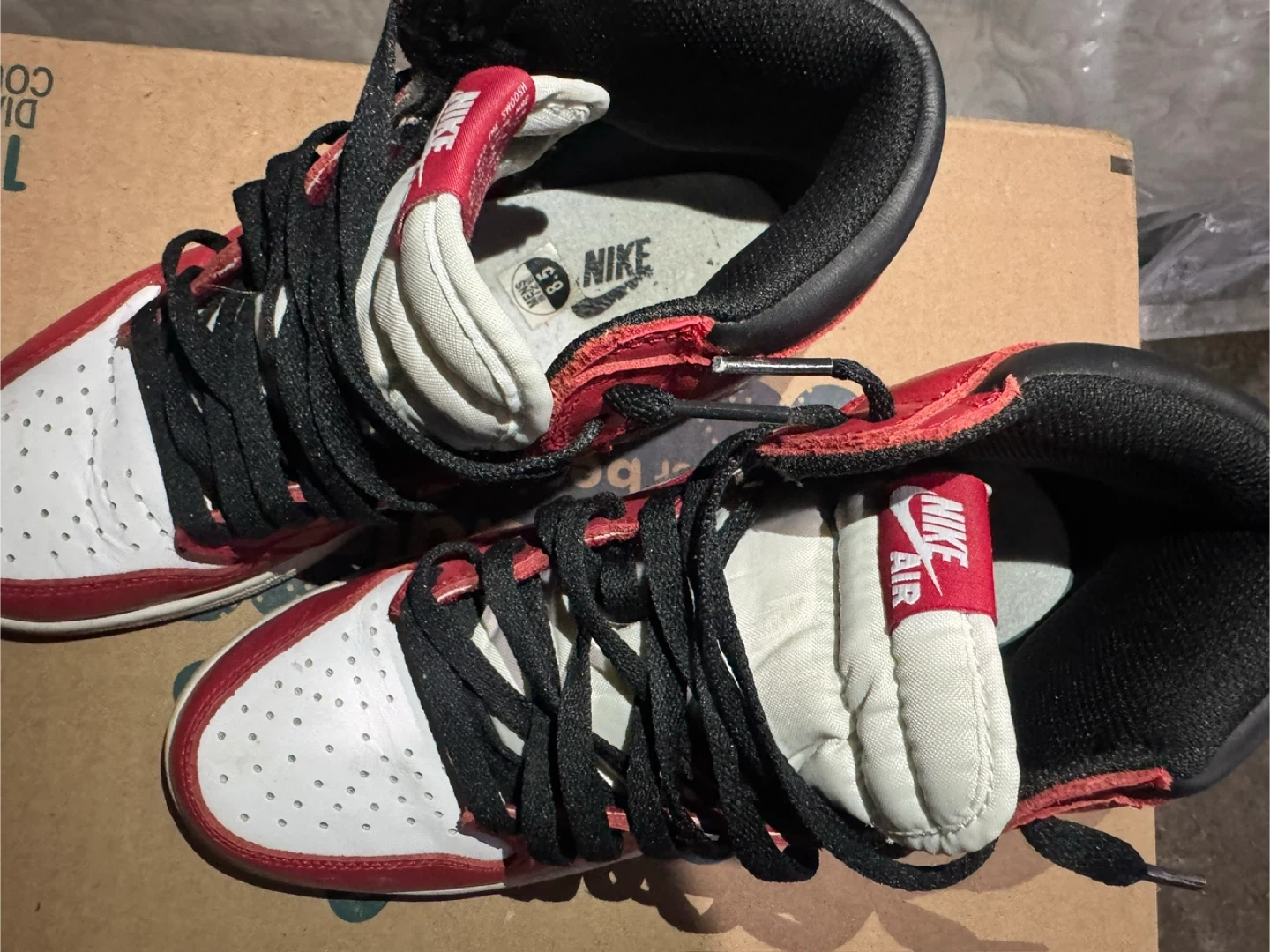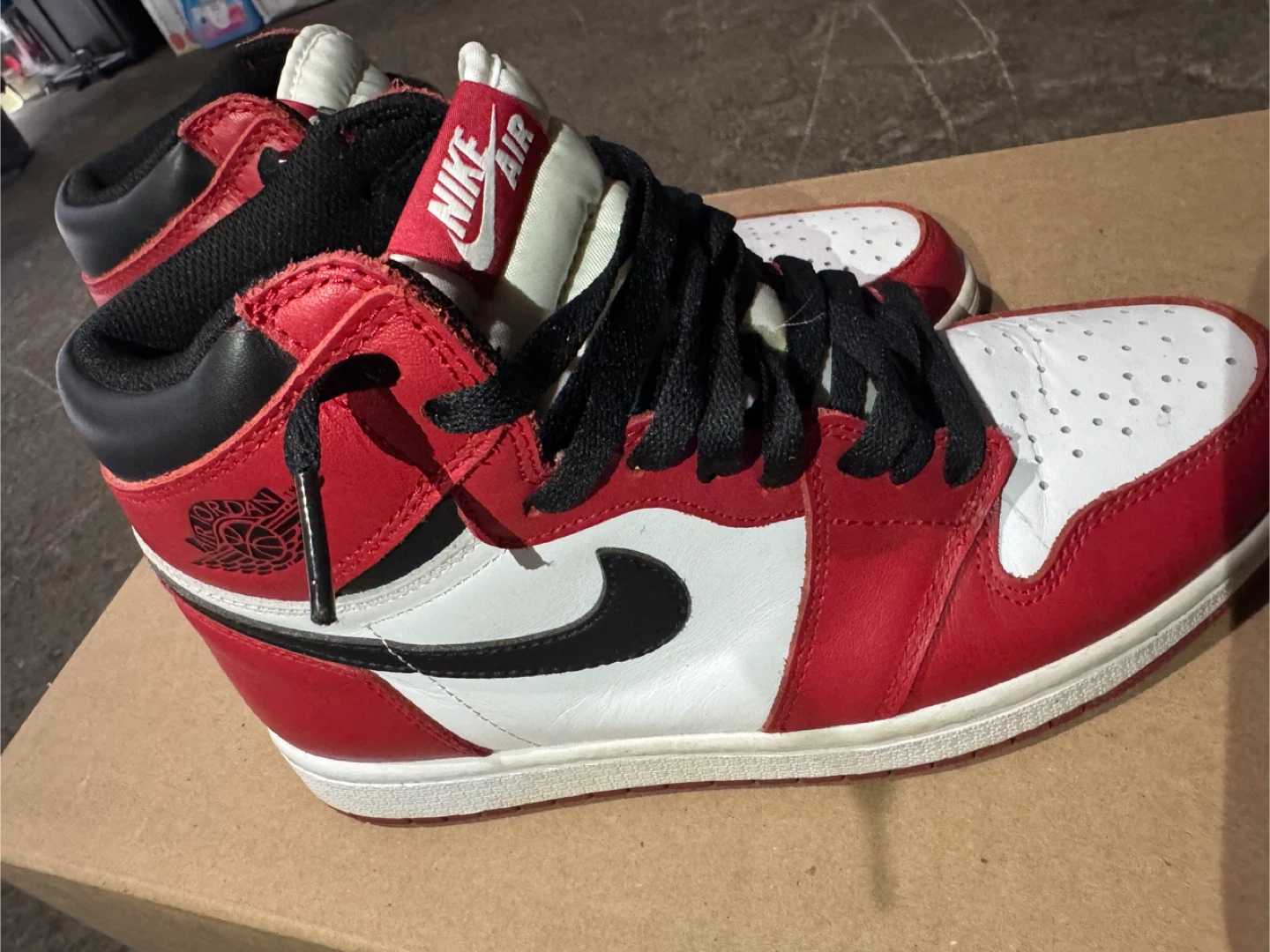Selling a pair of Nike Air Jordan 1s in a classic red and white colourway. They're in good condition and ready for a new owner. Size is a men's 8.5.