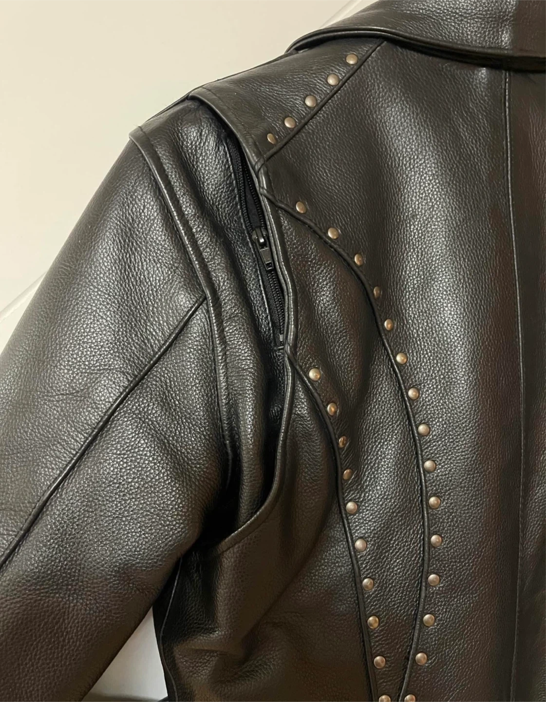 Genuine leather with studded accents, zip-out liner