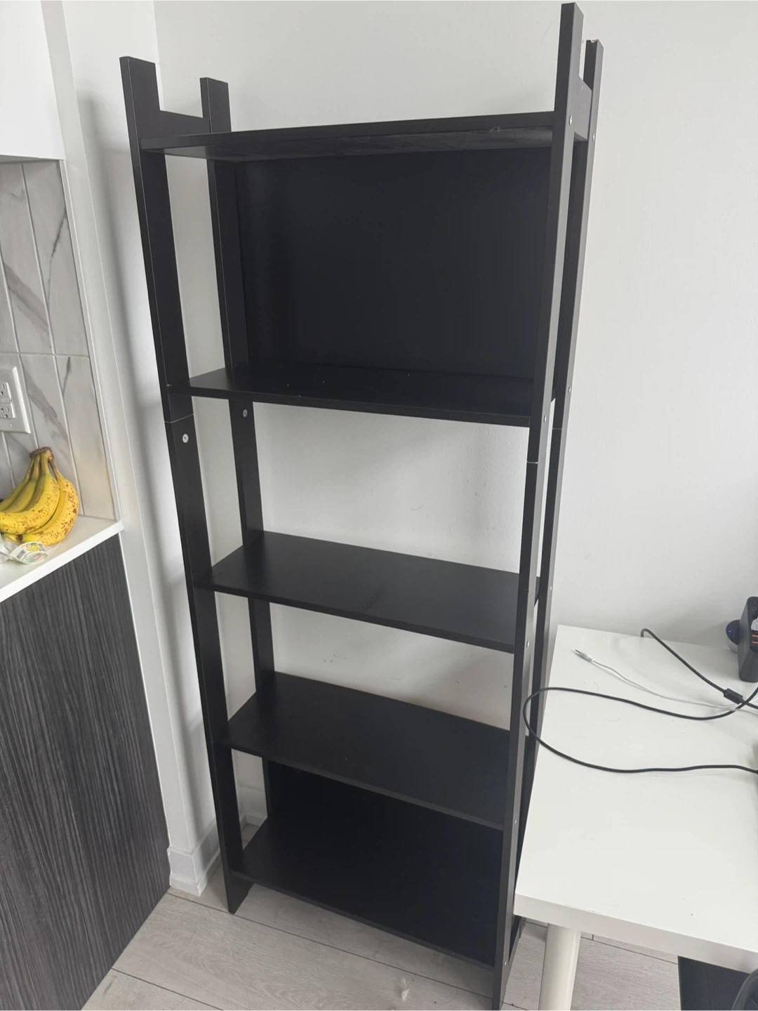 Selling a black ladder shelf in great condition! It's perfect for adding some extra storage and style to any room. It has five shelves.