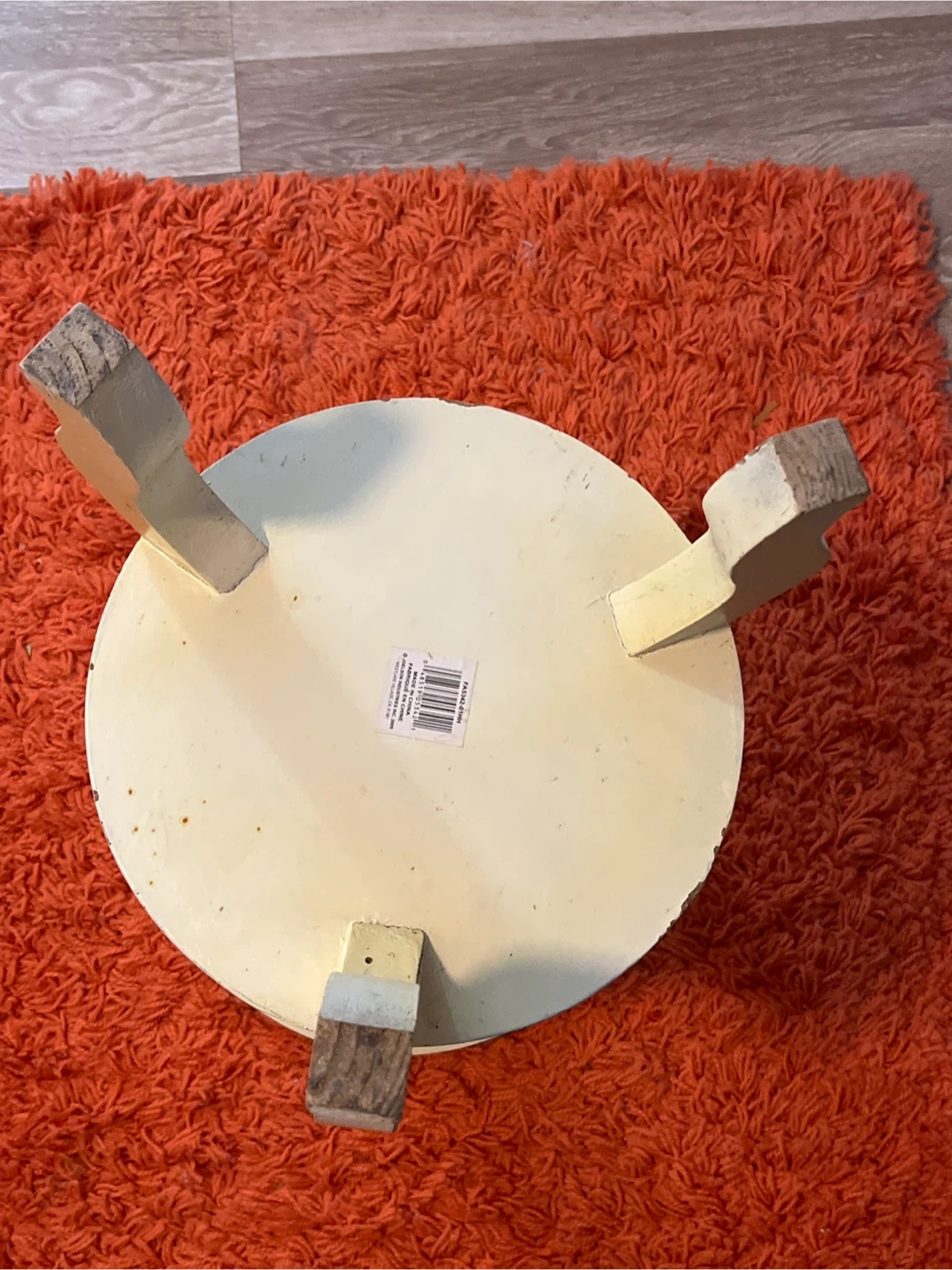 This is a charming vintage side table with a hand-painted floral design. It's made of wood and has a distressed cream finish. Its compact size makes it suitable for small spaces.