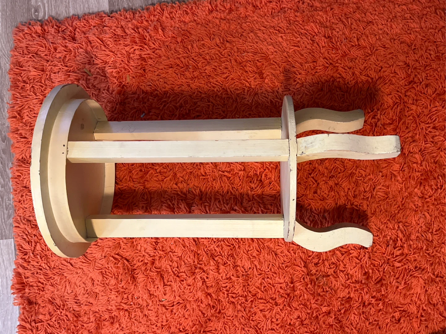 This is a charming vintage side table with a hand-painted floral design. It's made of wood and has a distressed cream finish. Its compact size makes it suitable for small spaces.