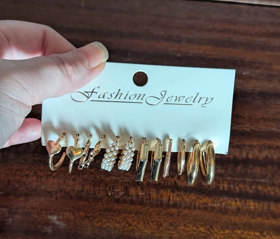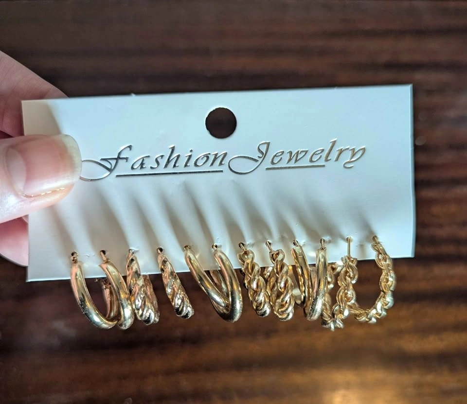 Elevate any outfit with these stunning sets of 6 pairs of gold/silver-tone fashion hoop earrings!