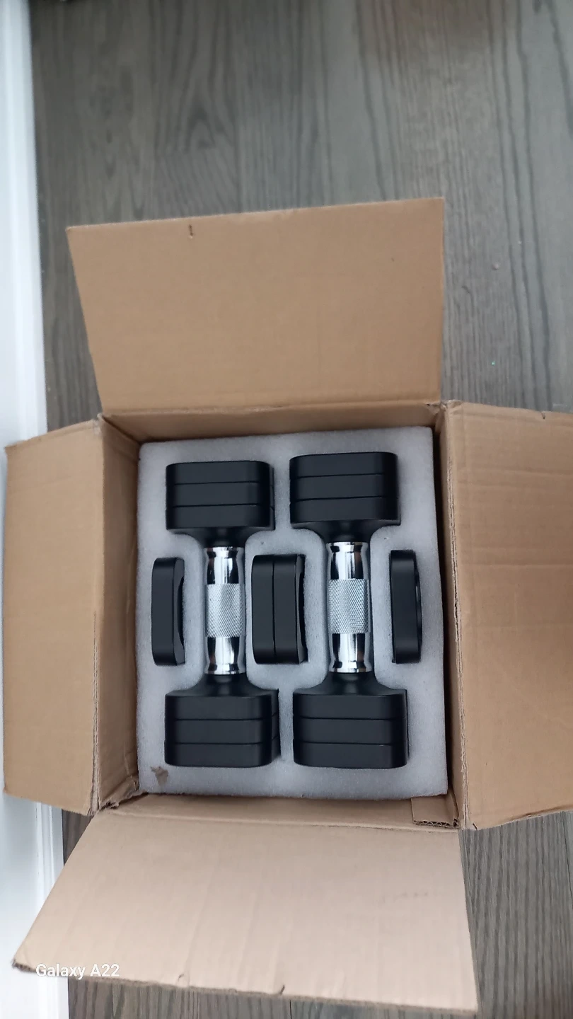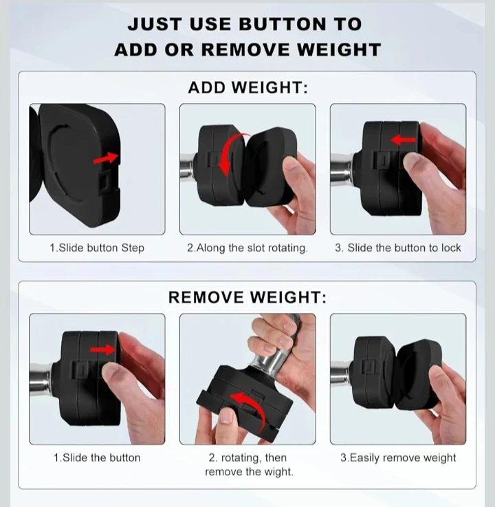 These adjustable dumbbells make changing weights super easy! Just use the button to add or remove weight as needed. They're made with stainless steel and won't rust easily. They're great for home workouts!