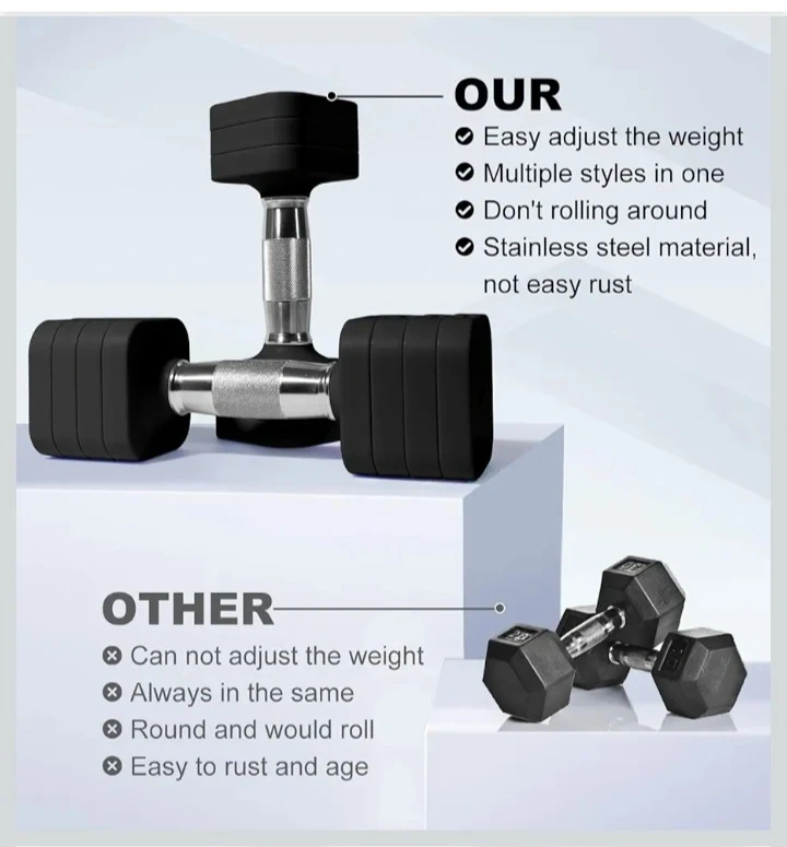 These adjustable dumbbells make changing weights super easy! Just use the button to add or remove weight as needed. They're made with stainless steel and won't rust easily. They're great for home workouts!