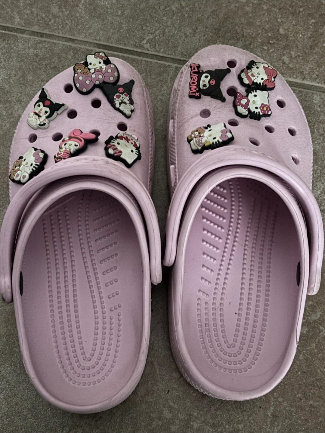 Buy & SellCrocsCrocs$85Light pink Crocs clogs decorated with various Hello Kitty and Kuromi Jibbitz. Made in Vietnam. Women's size 6. Easy to wear and customize!ConditionGoodSize6WHERE TO MEETCheck LocationView MapSELLERverifiedAnaAudley17611 reviews0 chats·1 favorites·24 viewsSEND CHAT TO SELLERHi Ana! I’m interested in your listing.Hi Ana! I’m interested in your listing.Get the Karrot app to chatSign In to chat
