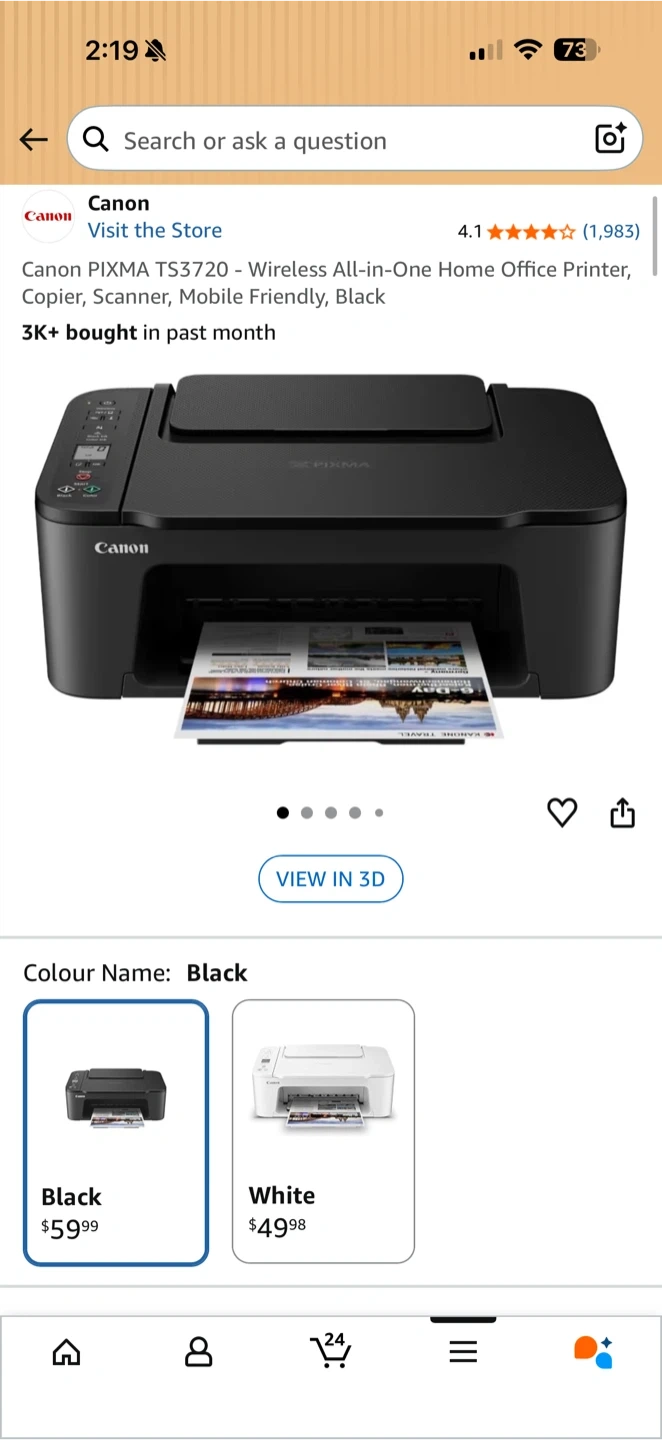 Canon PIXMA TS3720 Wireless All-in-One Printer / Scanner / Copier