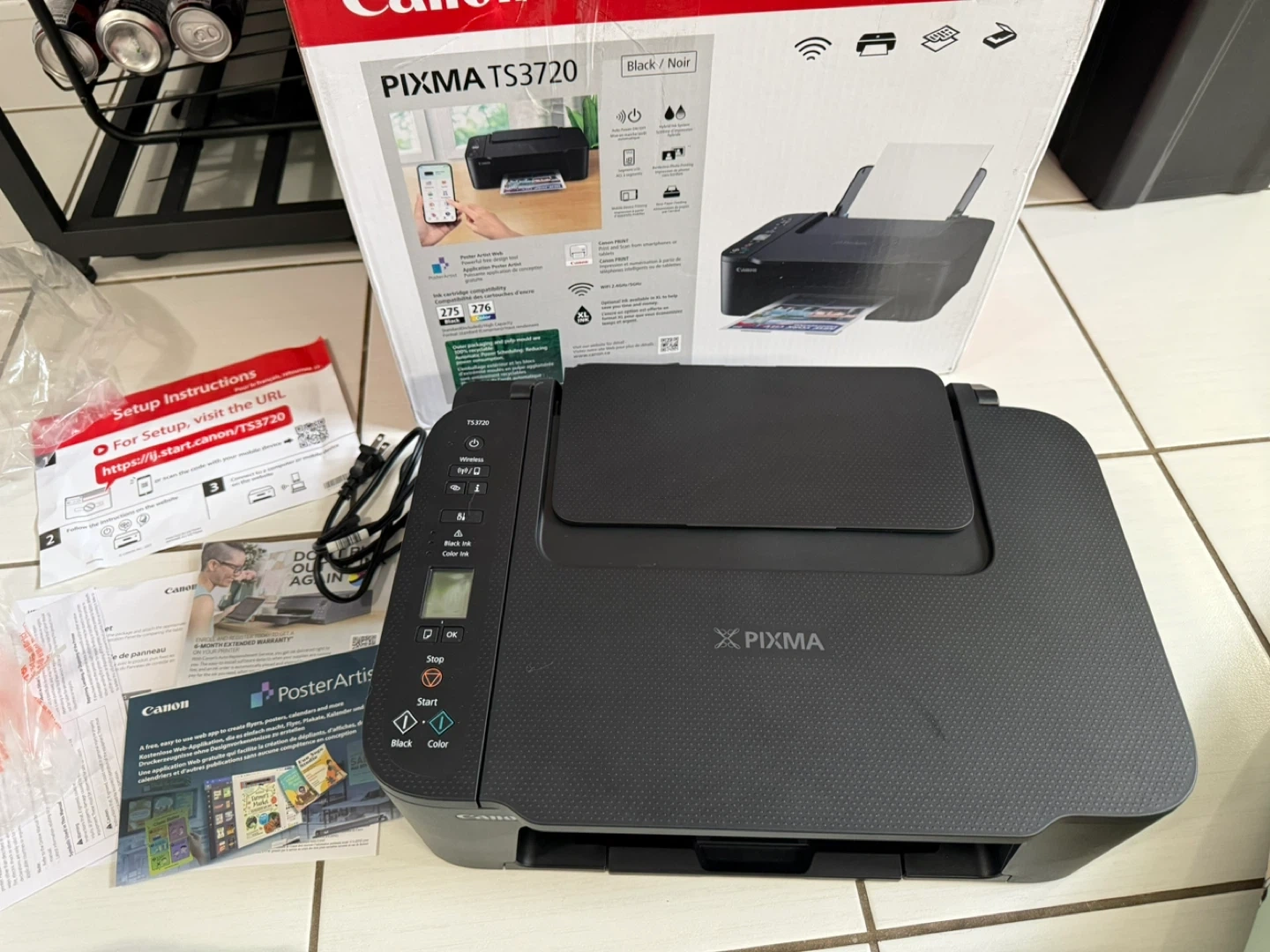 Compact Canon PIXMA TS3720 wireless printer. Works as printer, scanner, and copier. Great for home, school, or small office use.