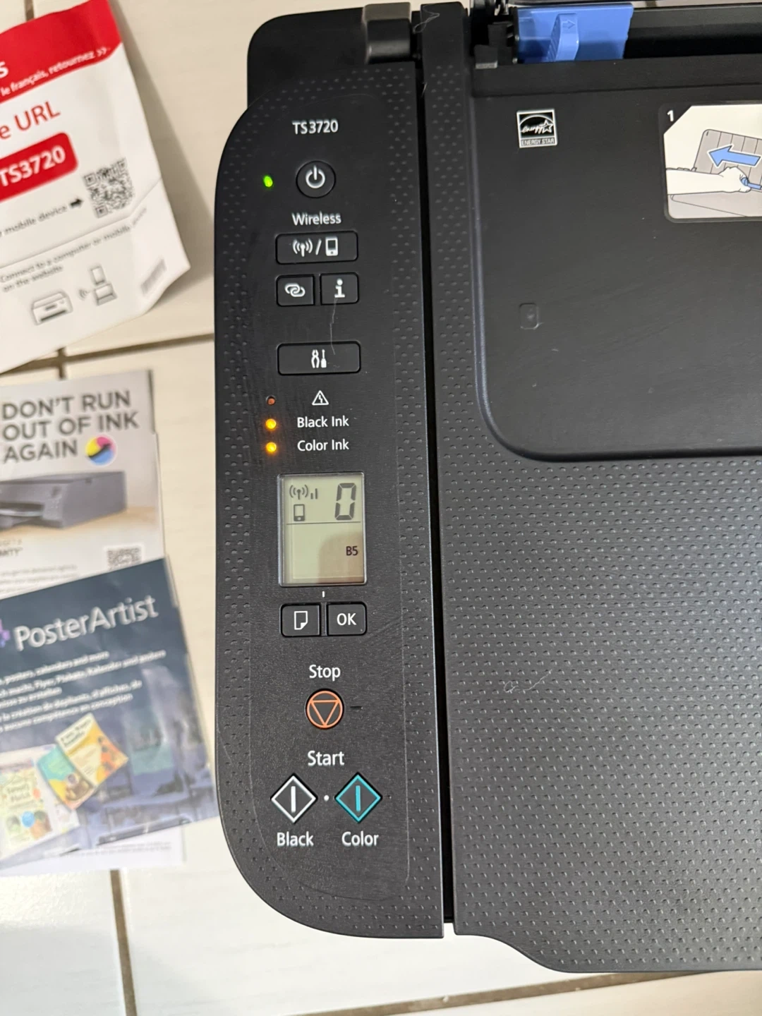 • Very low ink level in cartridges (may need replacement soon)