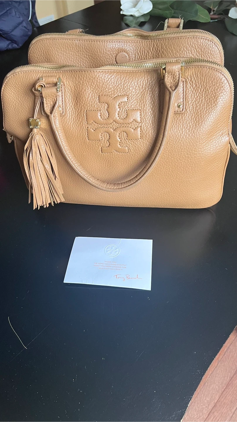 Selling a Tory Burch leather satchel. It's in great condition and ready for a new owner! The bag features the iconic Tory Burch logo and a stylish tassel. Perfect for everyday use or a special occasion