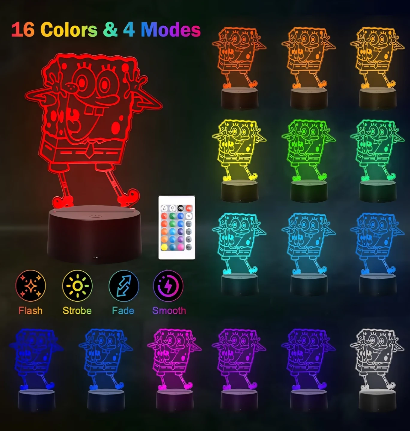 Night Light 3D Night Lamp LED Night Light for Baby Kids Adults, 16 Color Change Cute Mood Lamp, Decor Light with Remote, Dim, Timer for Nursery Bedroom Desktop, Gift for Birthday.