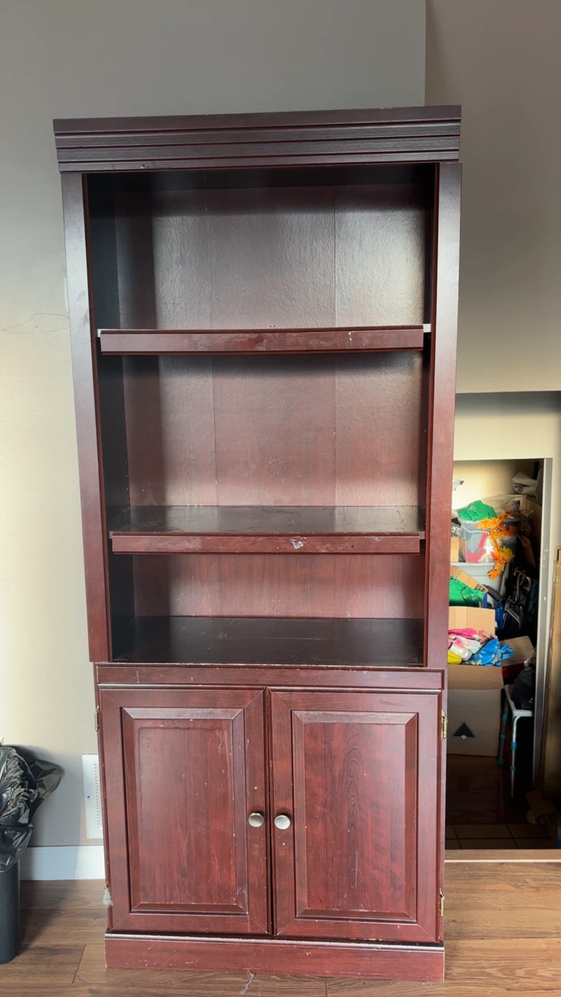 I'm selling a wooden bookcase with a cabinet at the bottom.