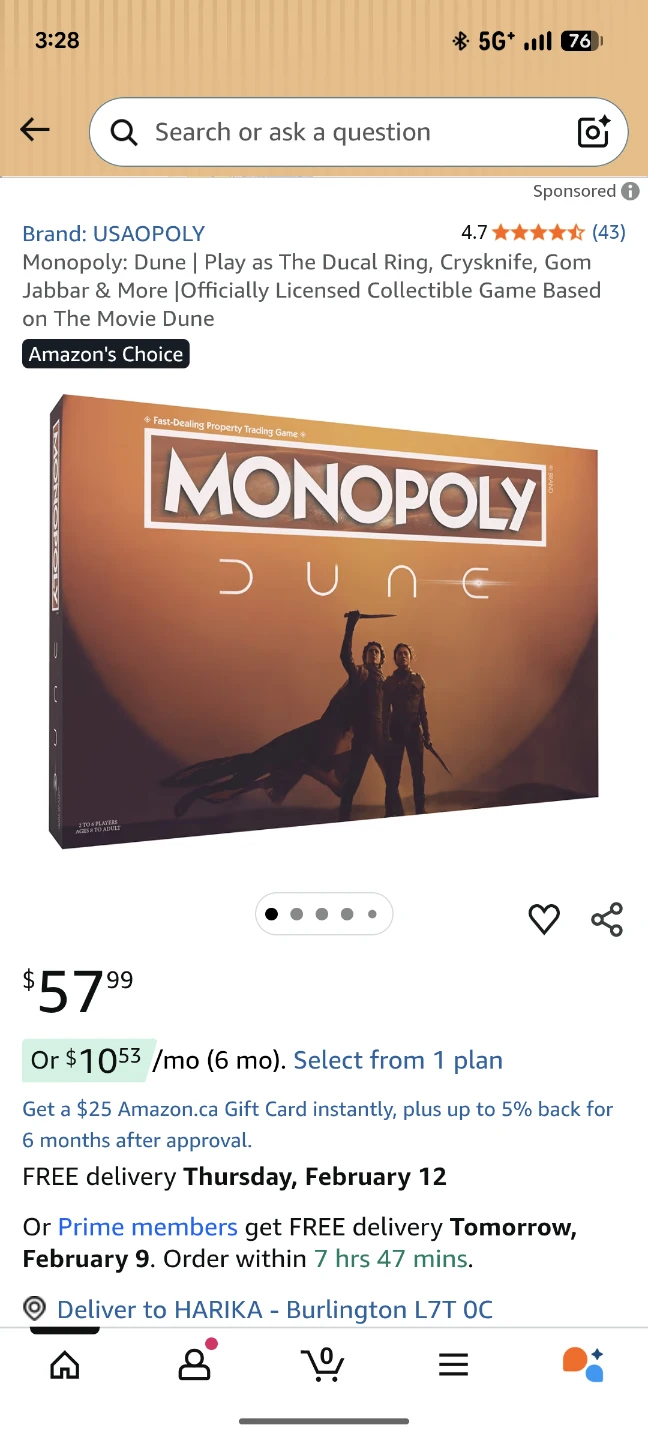 Original Brand New Monopoly Dune Edition Game. Comes with original packing. Bought it for 65$ and asking 40$ OBO.