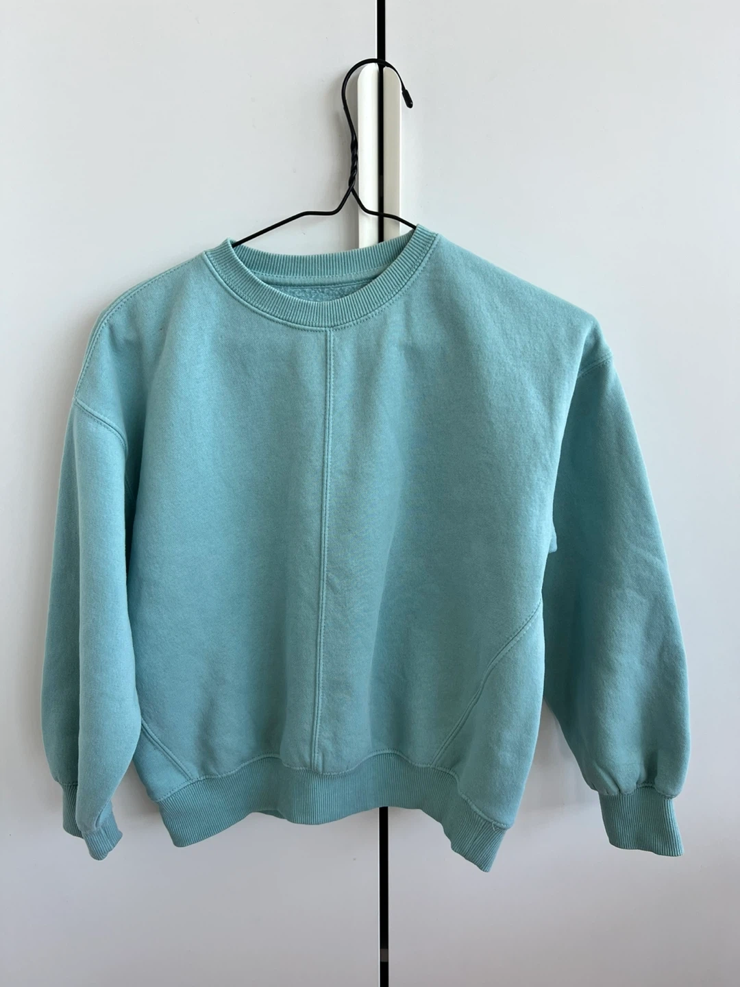 A soft, light blue crewneck sweatshirt. Perfect for casual wear, this sweatshirt offers a relaxed fit. It's a versatile piece for any wardrobe!