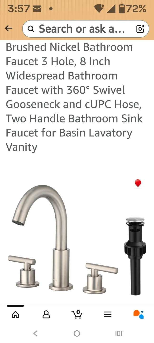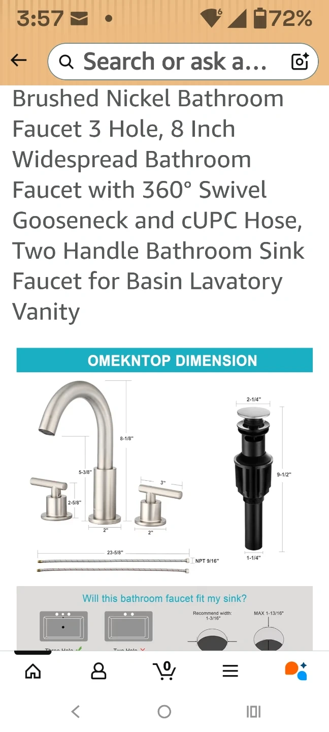 This is an 8-inch widespread bathroom sink faucet. It's a 3-hole, two-handle faucet with a 360-degree swivel gooseneck. It includes a cUPC hose. Brand new, sealed in box.