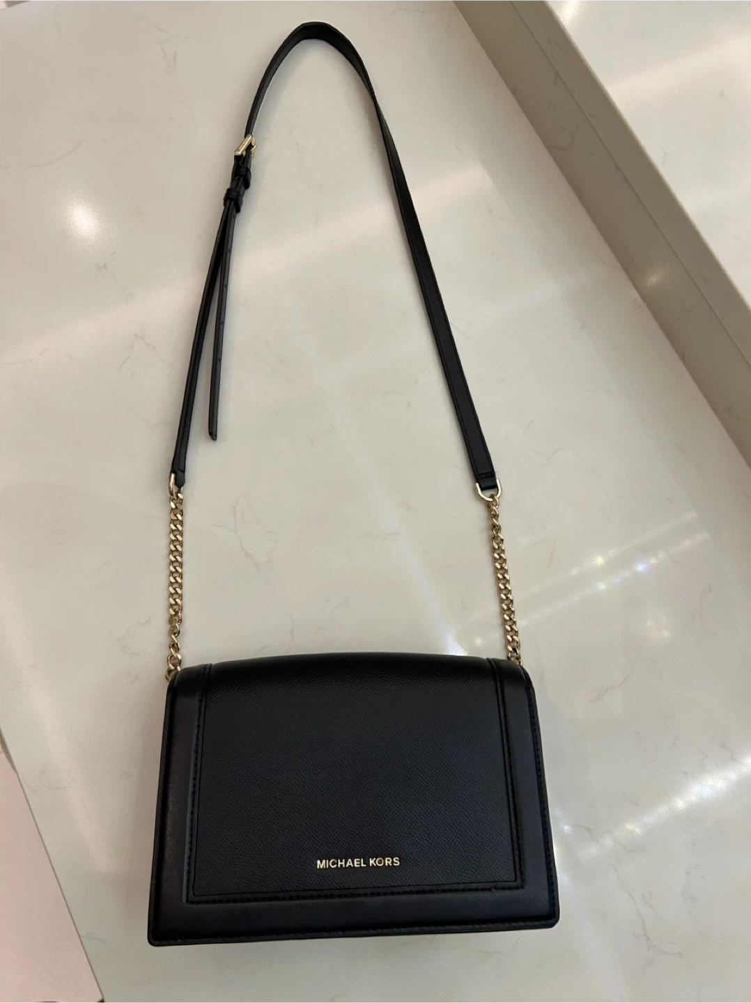 Buy & SellMichael Kors Black Leather Crossbody BagMichael Kors Black Leather Crossbody Bag$50Black leather bag by Michael Kors. Gold chain and leather strap and a fold-over flap.ConditionLike newBrandMichael KorsWHERE TO MEETSurrey CentralView MapSELLERJasmineNewton100 reviews0 chats·3 favorites·85 viewsSEND CHAT TO SELLERHi Jasmine! I’m interested in your listing.Hi Jasmine! I’m interested in your listing.Get the Karrot app to chatSign In to chat