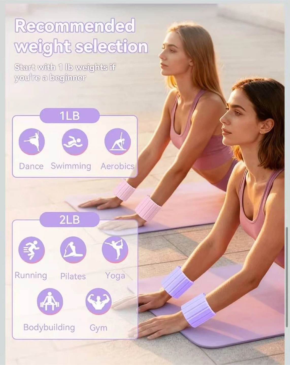 Weighted Bangles 2 Packs Adjustable Ankle and Wrist Weights for Women & Men – Set of Ankle Weights 2 lbs (1 lb Each Wrist Weight) | Weighted Arm Bands for Pilates, Yoga, Running & Walking