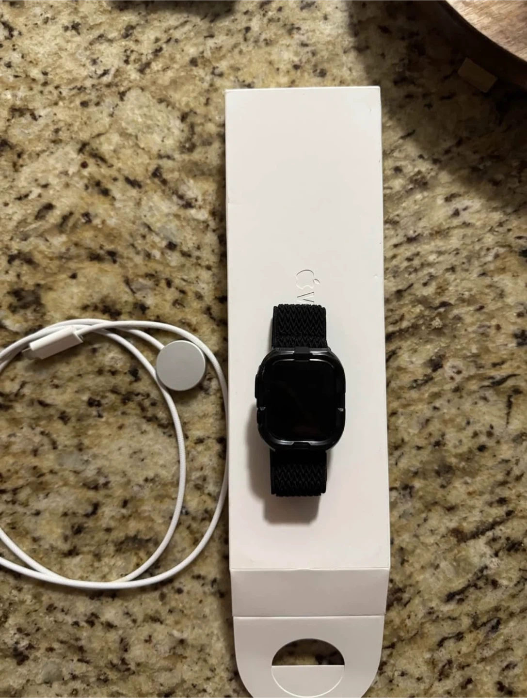 • Includes black strap (aftermarket, original Apple band not included)