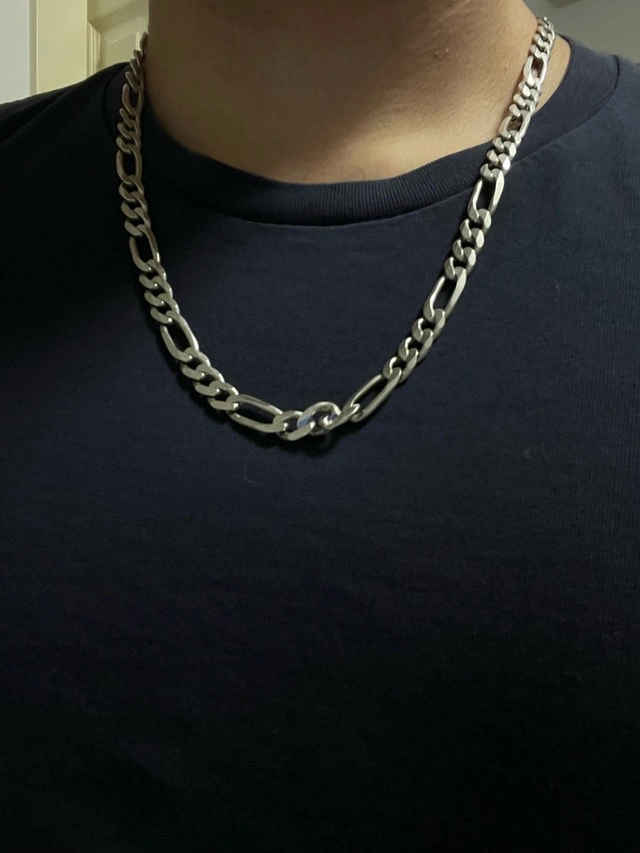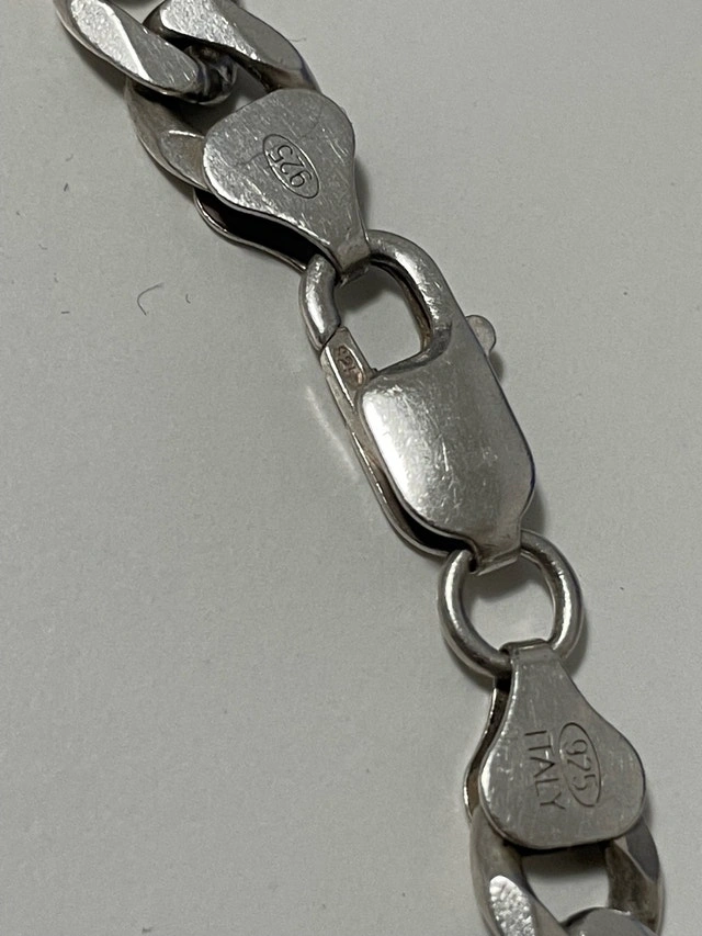 Authentic Italian-made 925 sterling silver Figaro chain. Solid and heavy piece with a clean, classic look. Made in Italy. 925 Sterling Silver. Length: 24 inches. Weight: 55.28 grams. Strong clasp, great condition. Perfect for daily wear or layering.