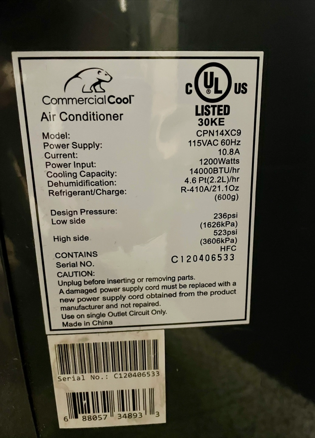 This sleek portable air conditioner is energy efficient and employs earth-friendly R-410A refrigerant. The CPN14XC9 air conditioner is RoHS Compliant and free of lead and mercury which makes safer from health hazards.